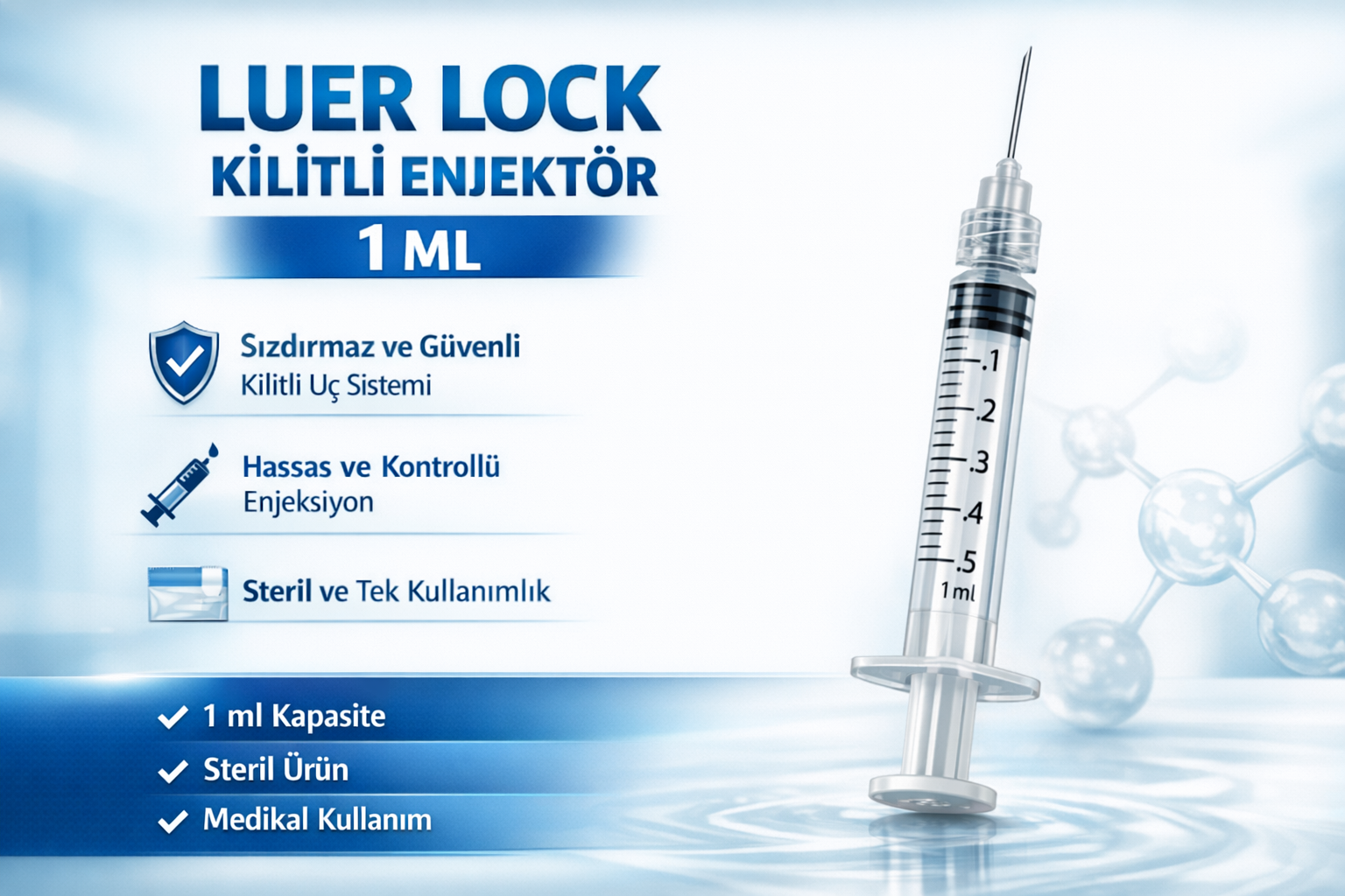 1 ml Luer Lock kilitli enjektör, medikal uygulamalarda güvenli ve sızdırmaz enjeksiyon için tasarlanmıştır. Kilitli uç yapısı sayesinde iğne bağlantısı sağlam şekilde sabitlenir ve sıvı kaçırma riskini azaltır. Hastaneler, klinikler, laboratuvarlar ve evde kullanım için uygundur. Ürün 10 adet, 25 adet, 50 adet, 75 adet ve 100 adet paket seçenekleriyle sunulmaktadır.