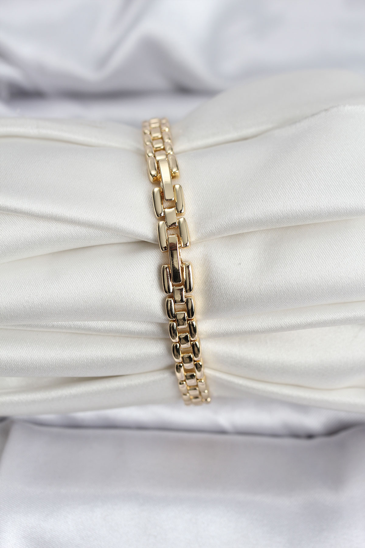 14K Gold Renk Kaplama Zirkon Kare Taşlı CM Kadın Bileklik