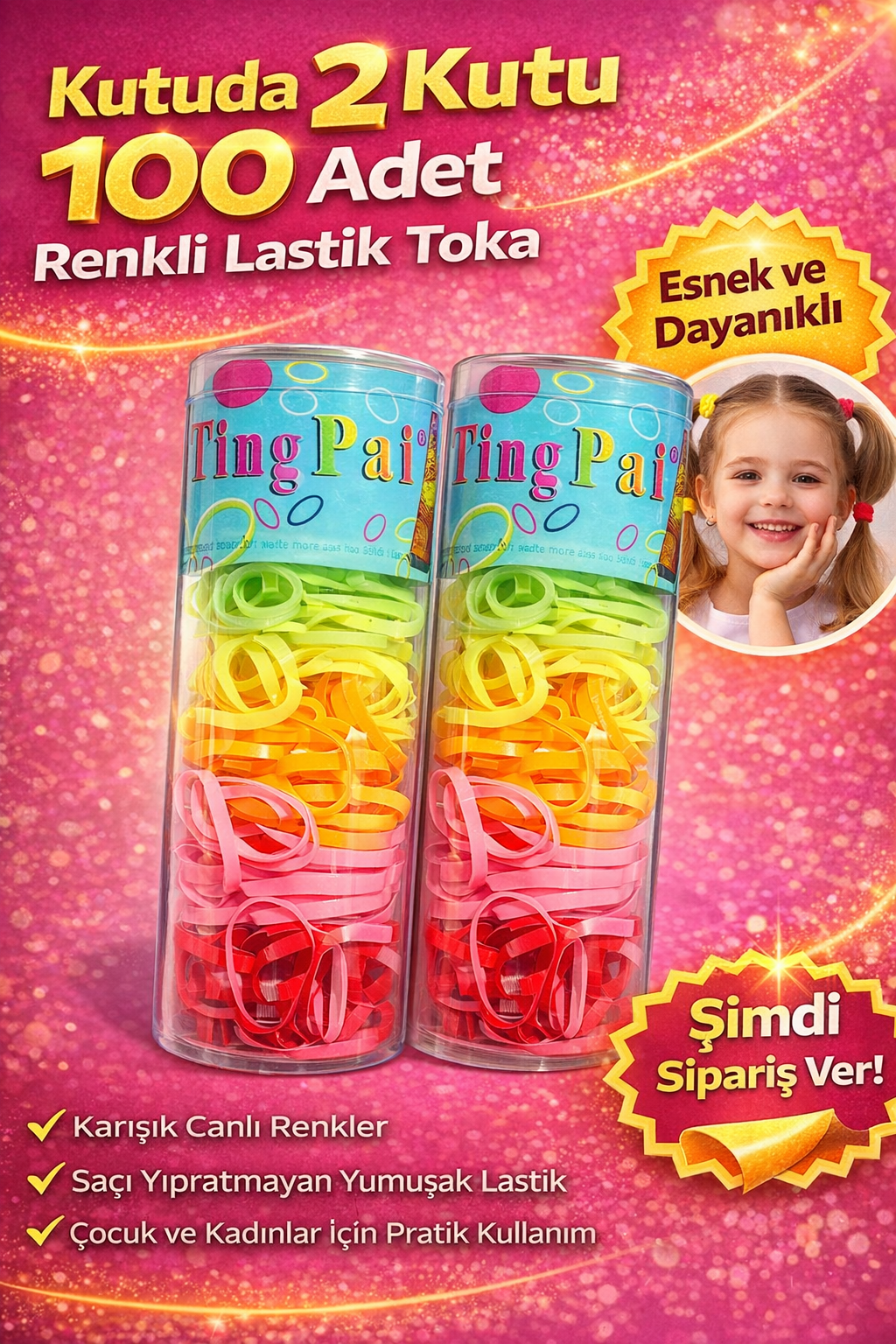 Esnek ve dayanıklı yapıya sahip tokalar saçları yıpratmadan kolayca toplamanıza yardımcı olur. Canlı ve farklı renk seçenekleri sayesinde günlük kullanımda farklı saç modelleri oluşturabilirsiniz.