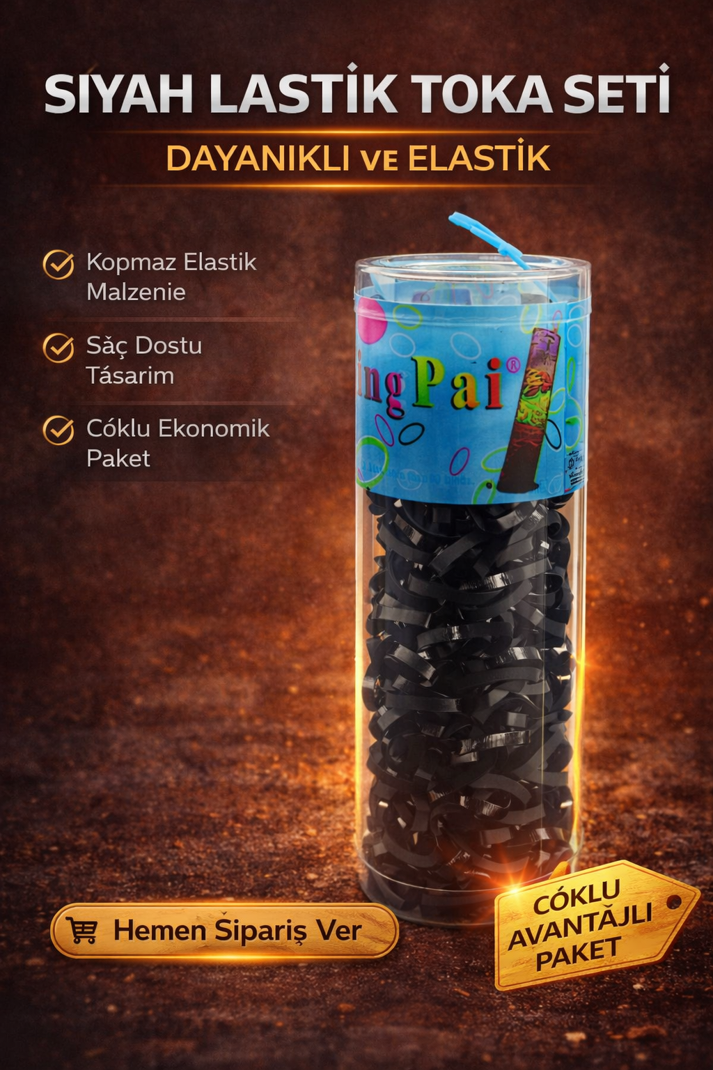 SiyahRenkli lastik toka seti, saç toplama ve saç şekillendirme için pratik ve kullanışlı bir saç aksesuarıdır. Paket içerisinde 2 kutu bulunur ve her kutuda 50 adet olmak üzere toplam 100 adet siyah renkli lastik toka yer alır.