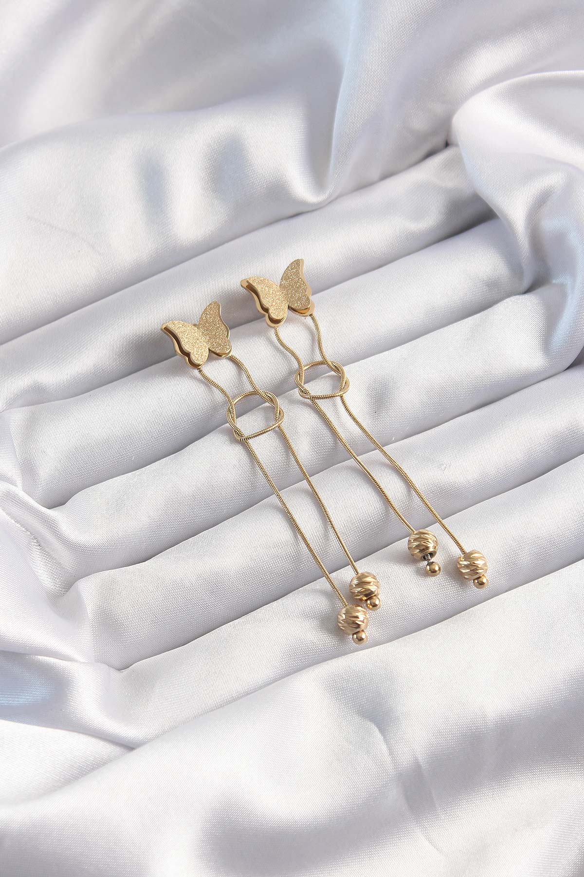 316L Çelik Altın Renk Sallantılı Düğüm Model Kelebek Küpe