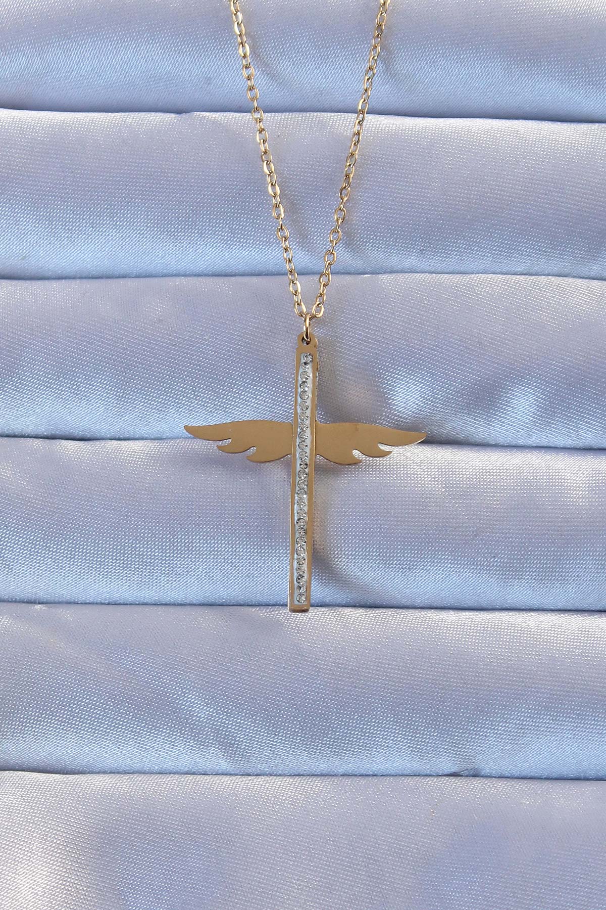 316L Çelik Altın Renk Zirkon Taşlı Mikail Kolye