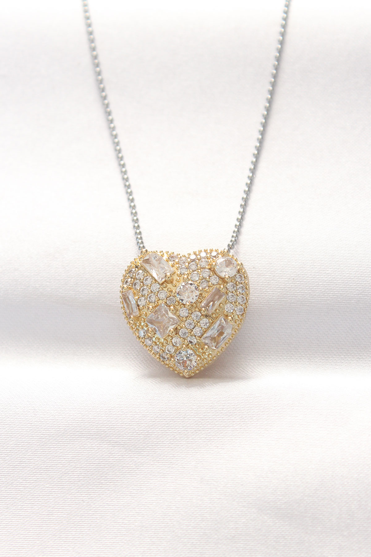 316L Çelik Çift Renk Zirkon Taşlı Kalp Kolye