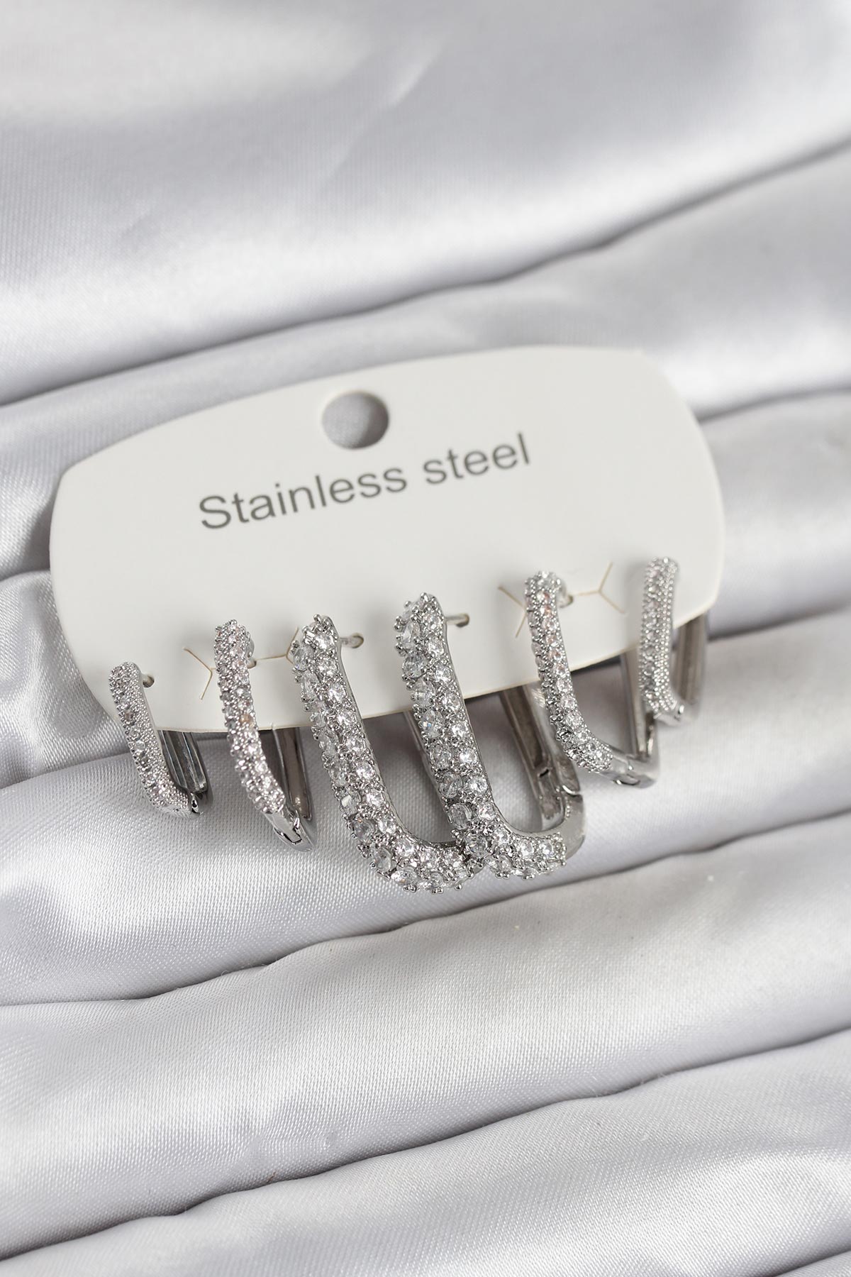 316L Çelik Gold Renk 6'lı Set Zirkon Taşlı Kadın Küpe