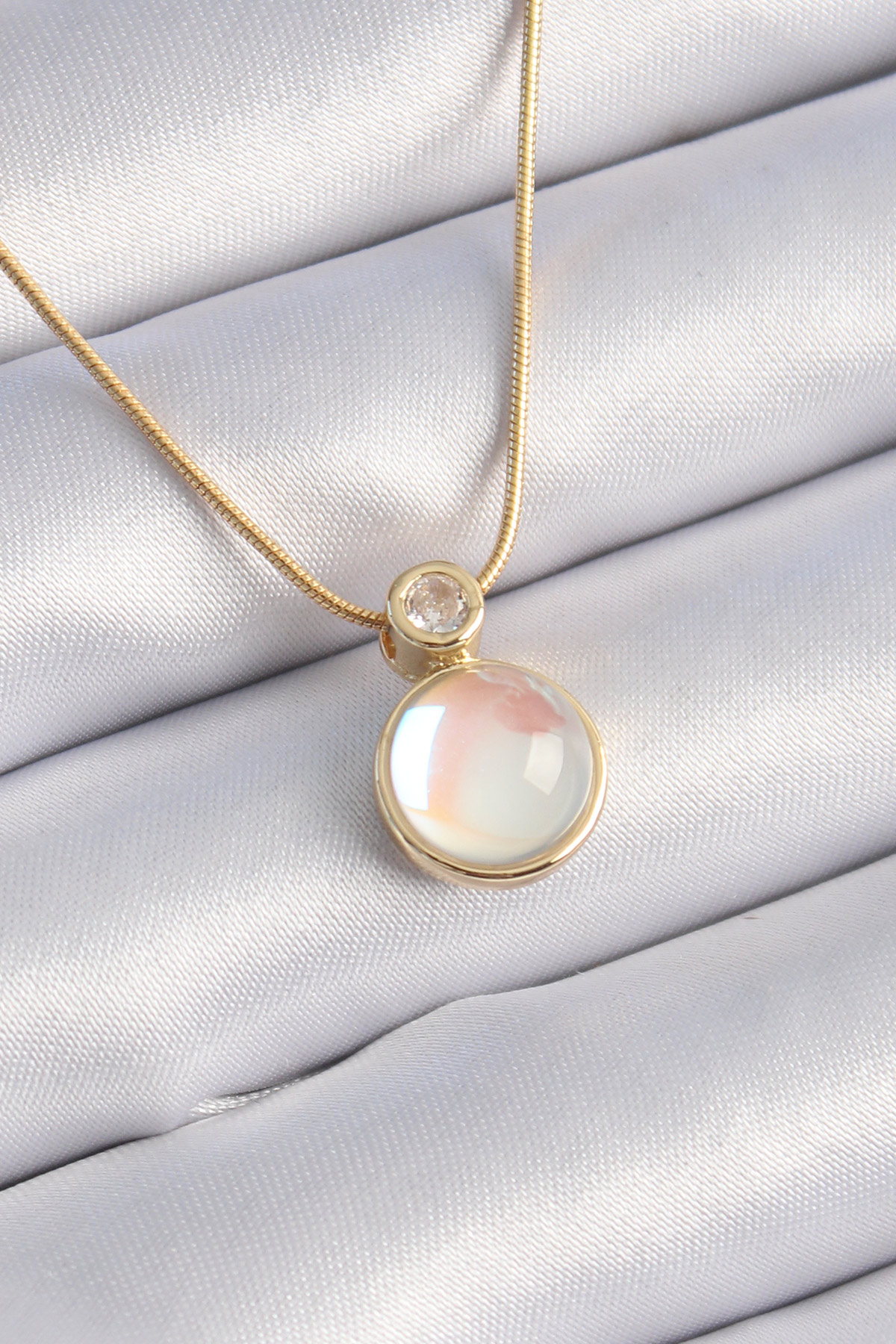 316L Çelik Gold Renk Beyaz Sedefli Vintage Kadın Kolye