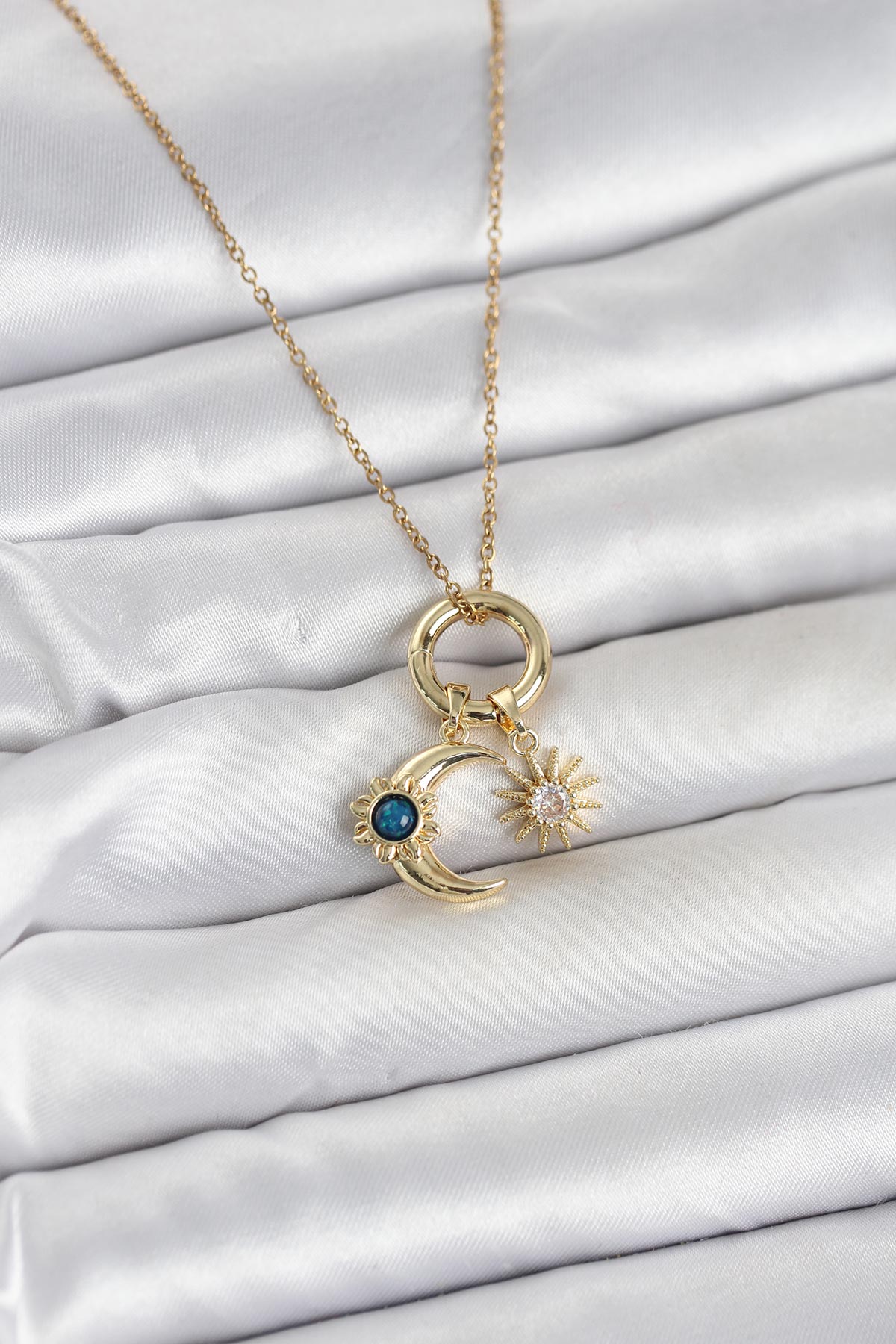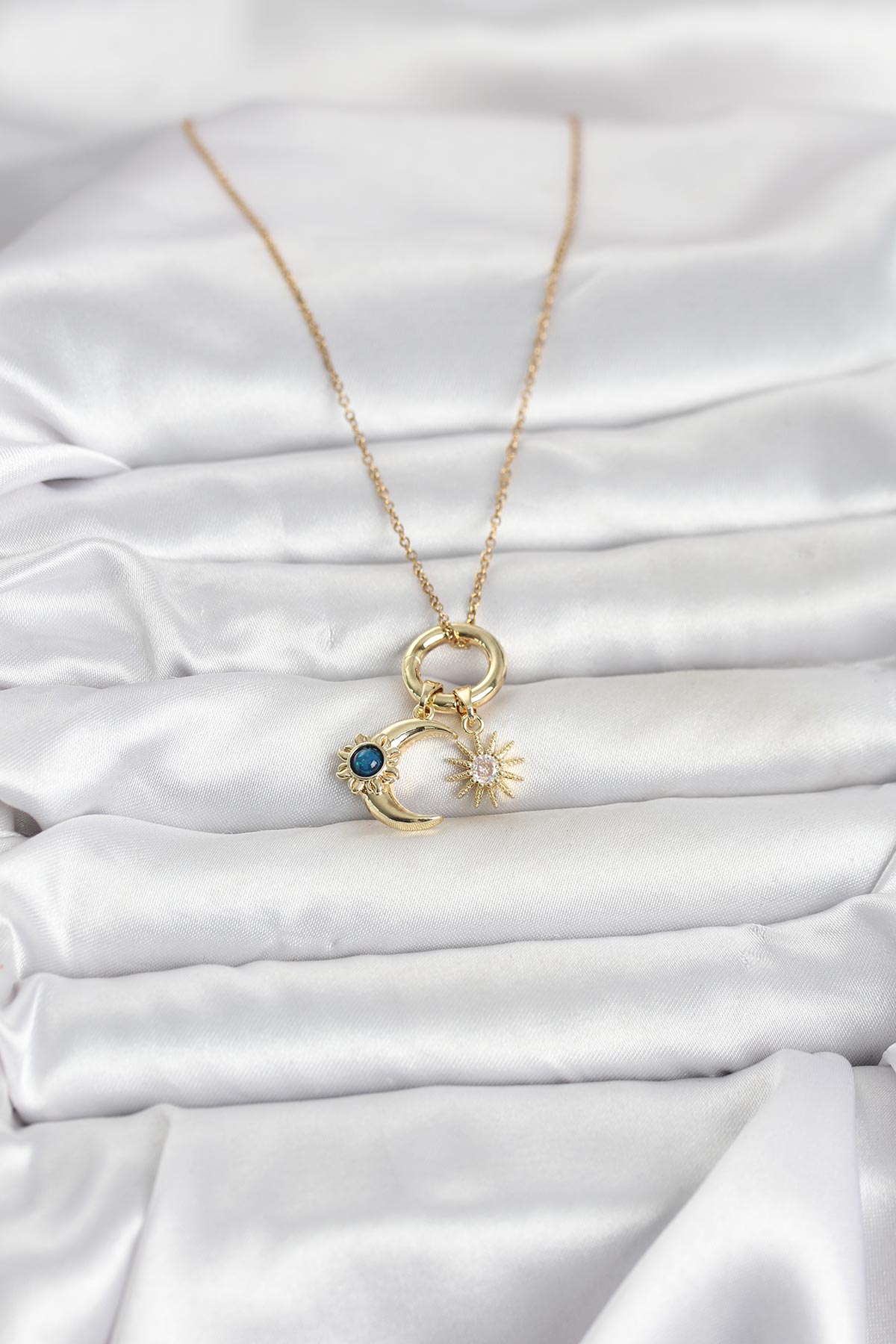 316L Çelik Gold Renk Gece Gündüz Tema Charmlı Kadın Kolye