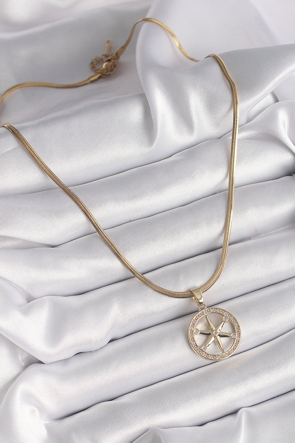 316L Çelik Gold Renk İtalyan Zincir Zirkon Taşlı Kutup Yıldız Model Kadın Kolye