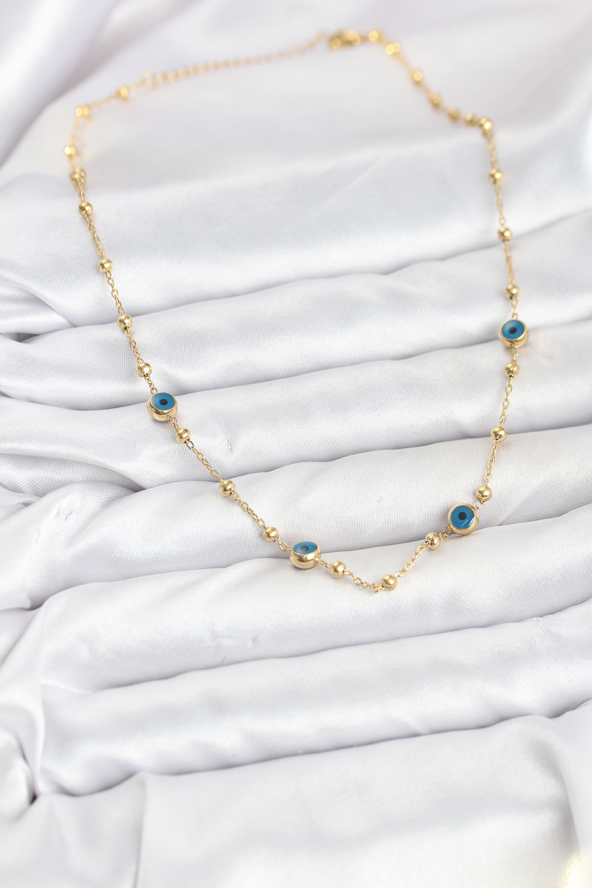 316L Çelik Gold Renk Nazarlı ve Topçuklu Model Kadın Kolye