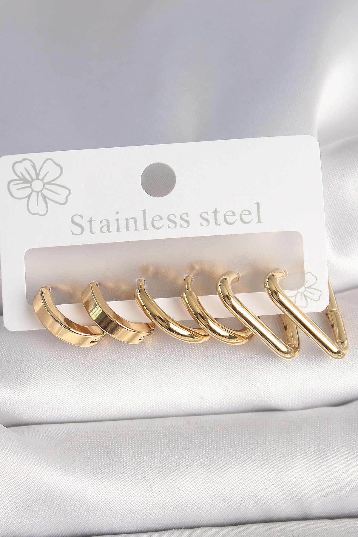 316L Çelik Gold Renk Üçgen Halka Model Kadın Küpe Seti