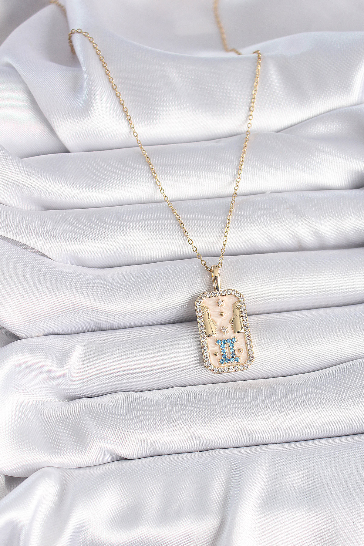 316L Çelik Gold Renk Zincir İkizler Burcu Zirkon Taşlı Kadın Kolye