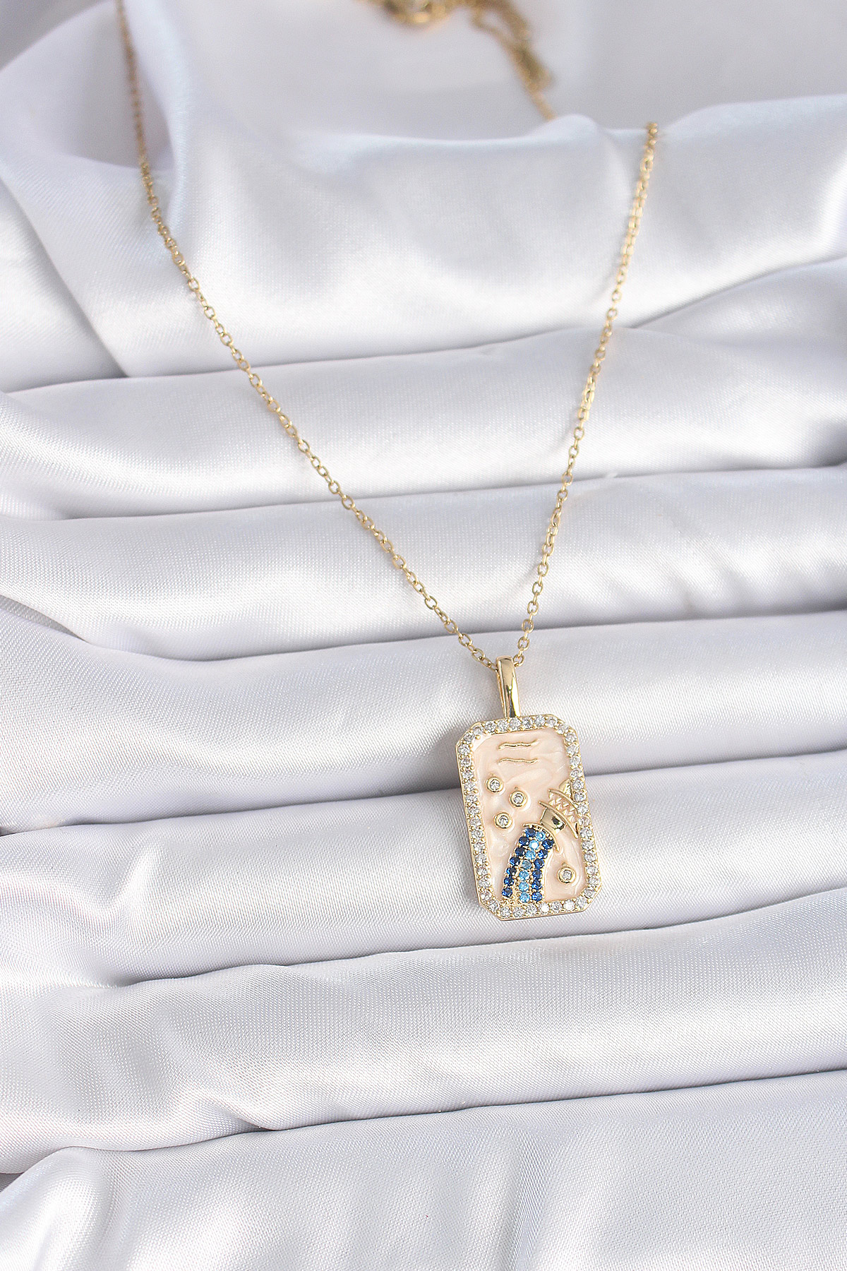 316L Çelik Gold Renk Zincir Kova Burcu Zirkon Taşlı Kadın Kolye