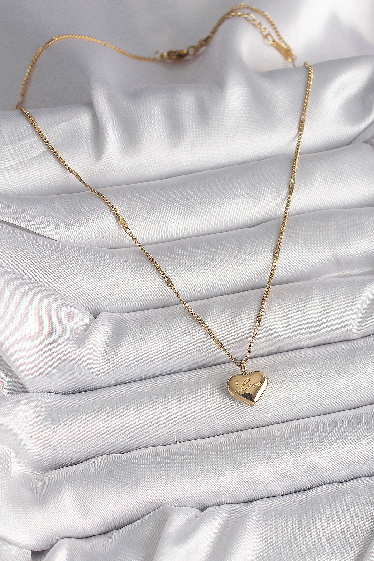 316L Çelik Gold Renk Zincir Love İşlemeli Kalp Figür Kadın Kolye