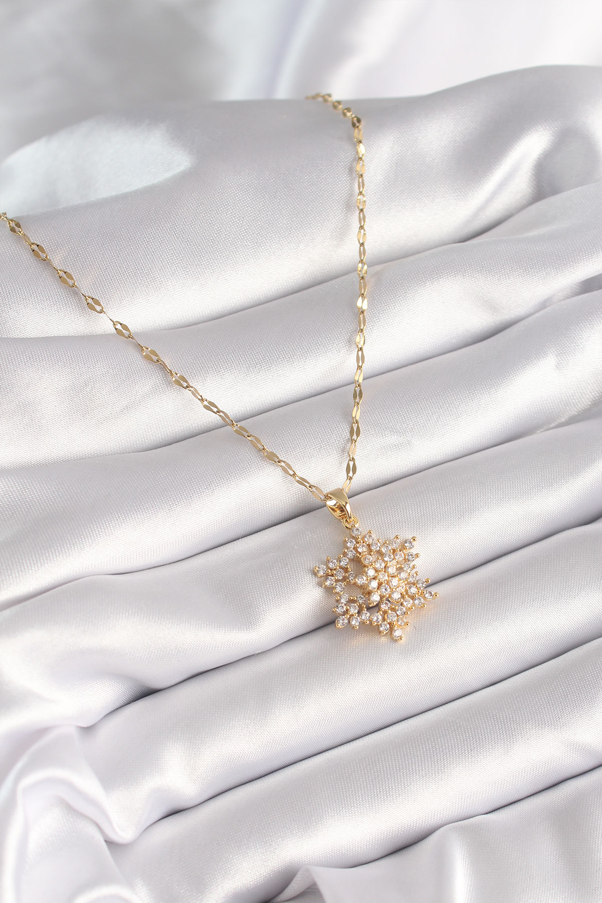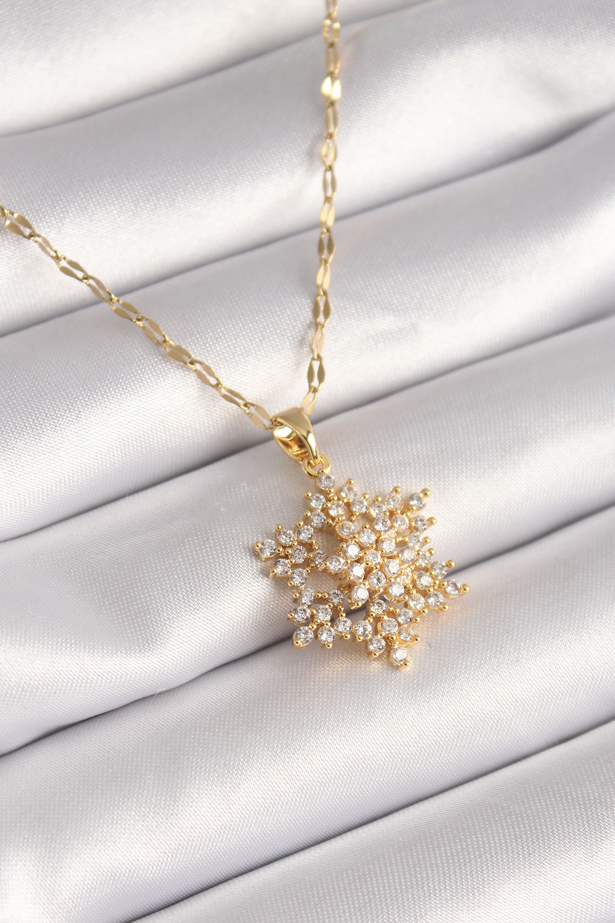 316L Çelik Gold Renk Zincir Zirkon Taşlı Yıldız Model Kadın Kolye