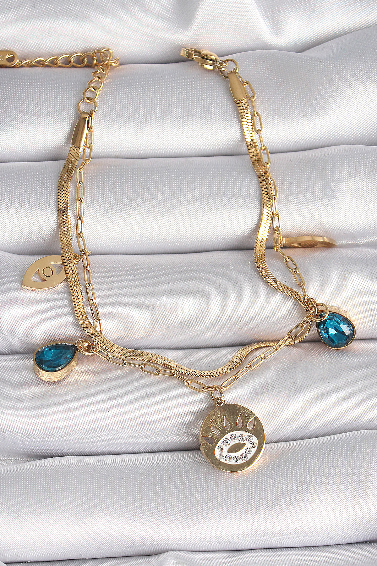 316L Çelik Gold Renk Zirkon Taşlı Göz İşleme Figür Kadın Bileklik