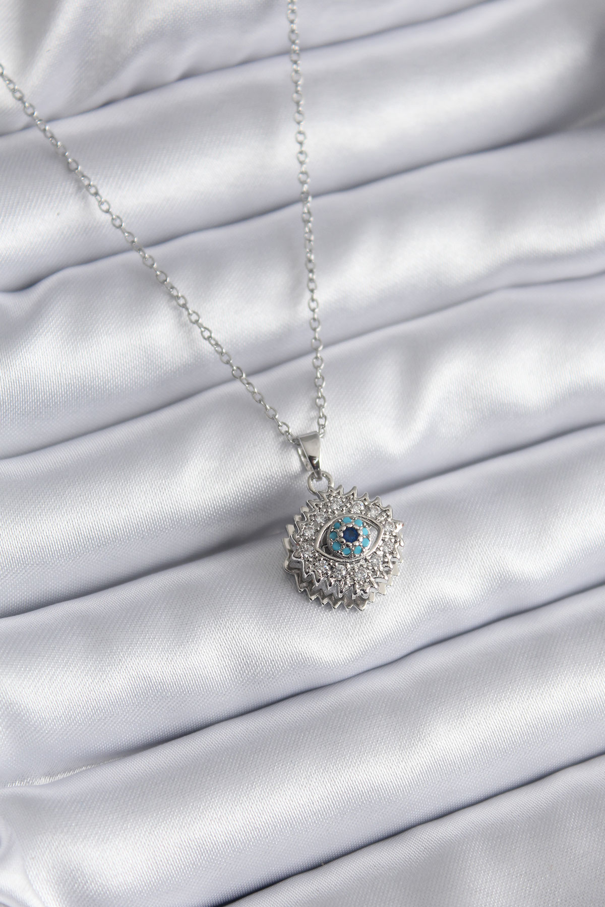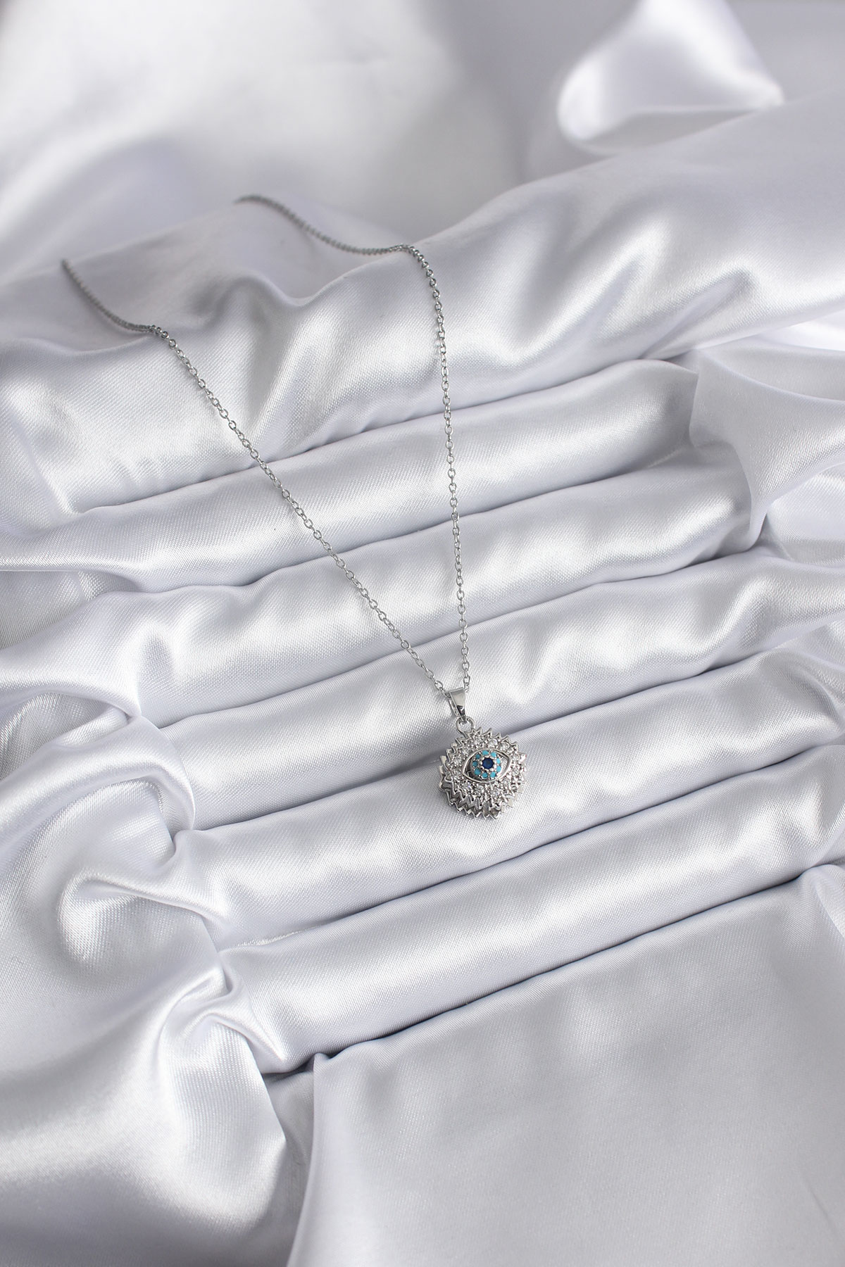 316L Çelik Gold Renk Zirkon Taşlı Göz Model Kadın Kolye