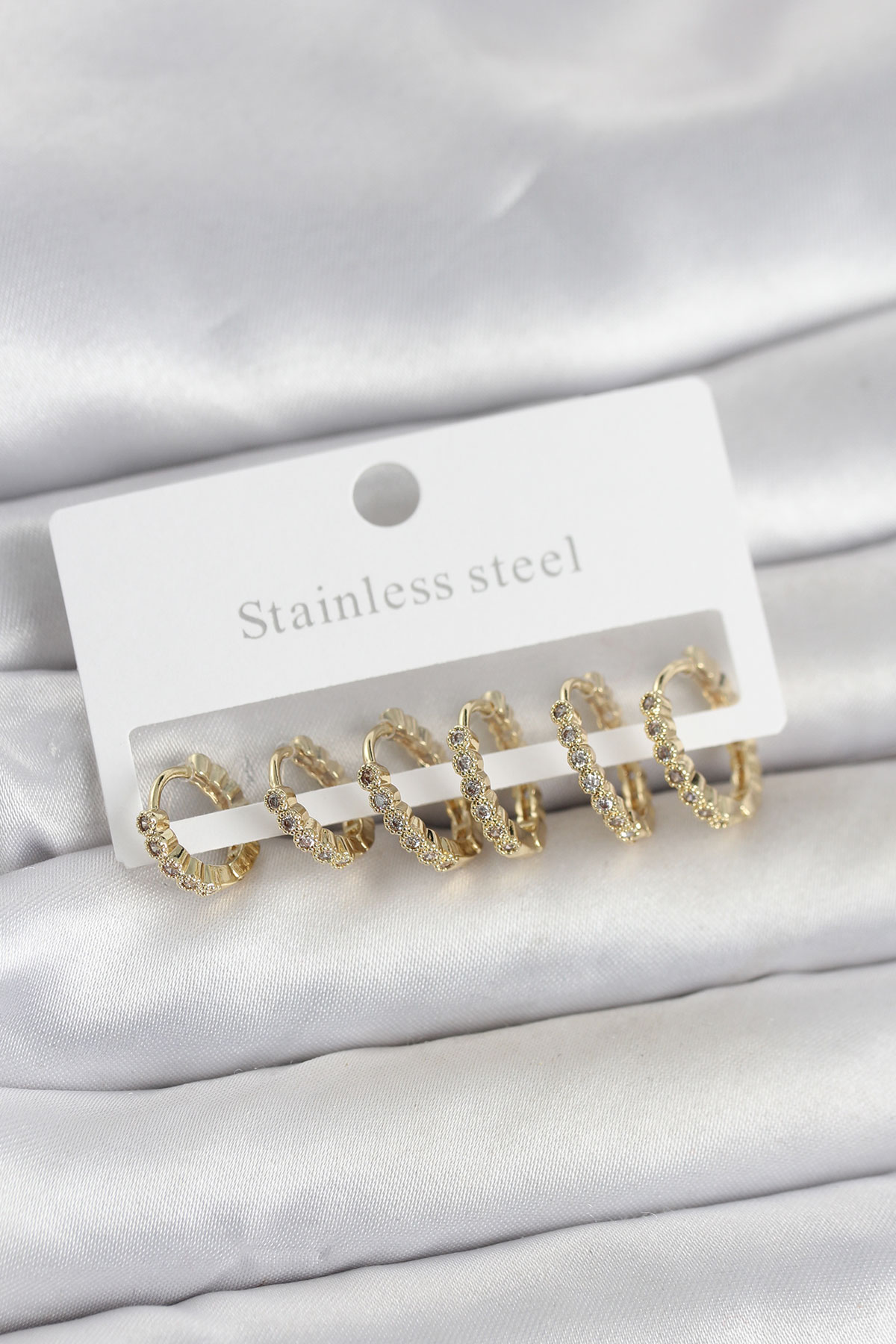 316L Çelik Gold Renk Zirkon Taşlı Halka Model Kadın Küpe Seti