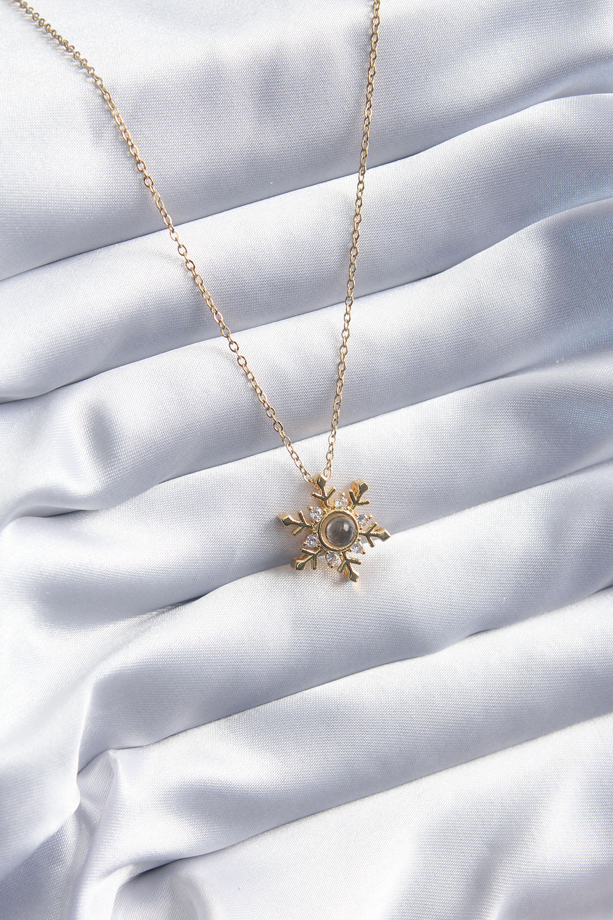 316L Çelik Gold Renk Zirkon Taşlı Kar Tanesi Projeksiyon Model Kadın Kolye