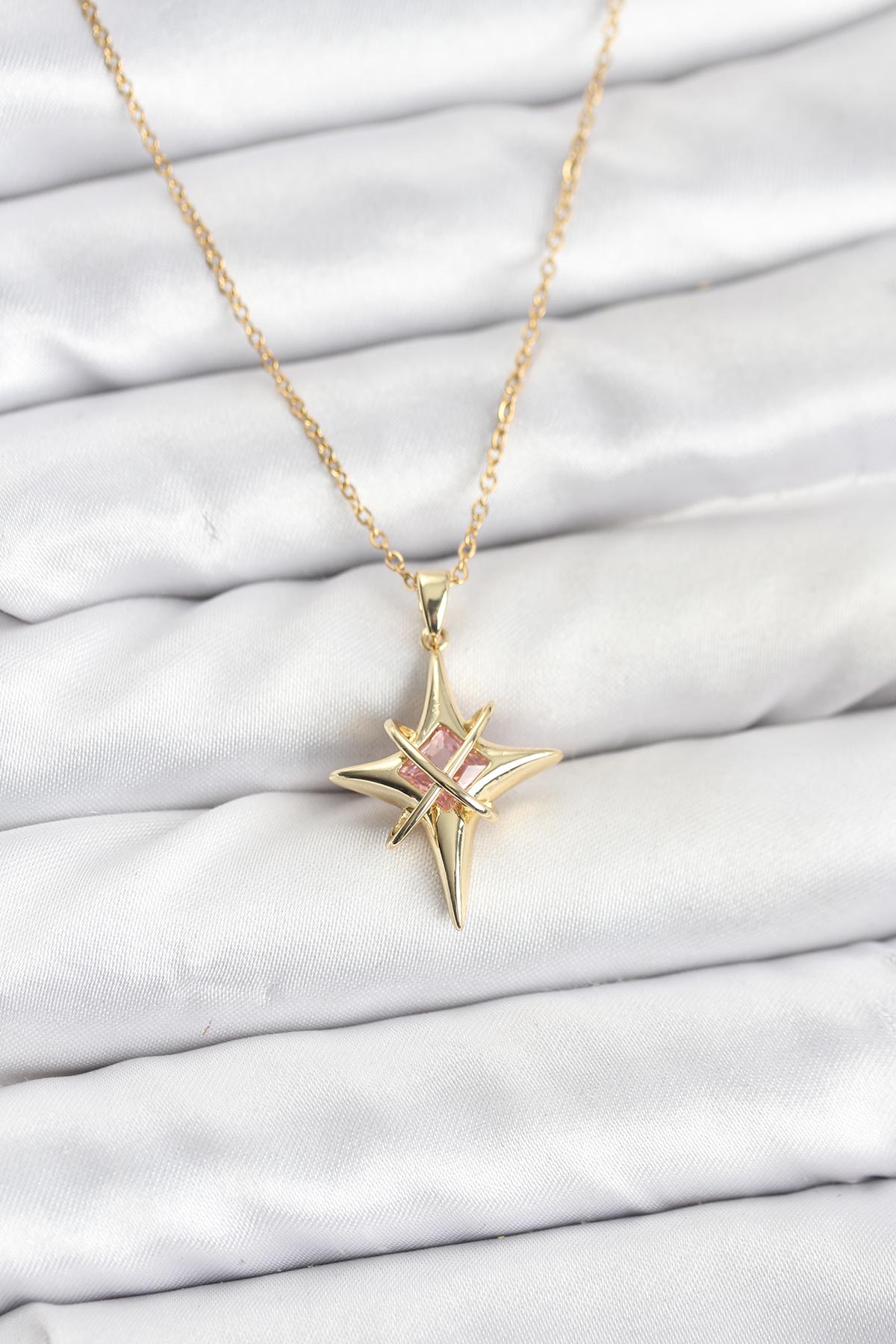 316L Çelik Gold Renk Zirkon Taşlı Kutup Yıldızı Model Kadın Kolye