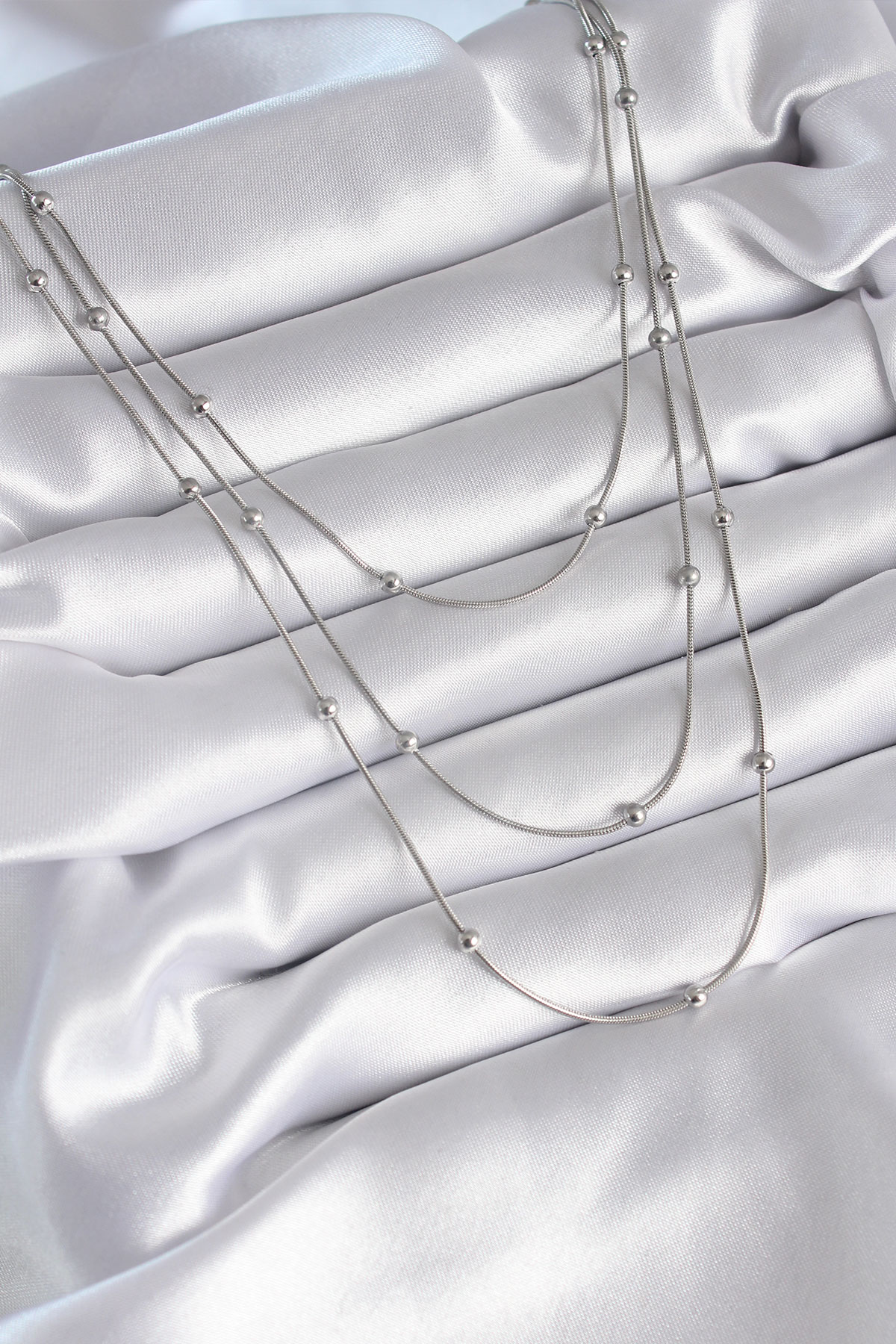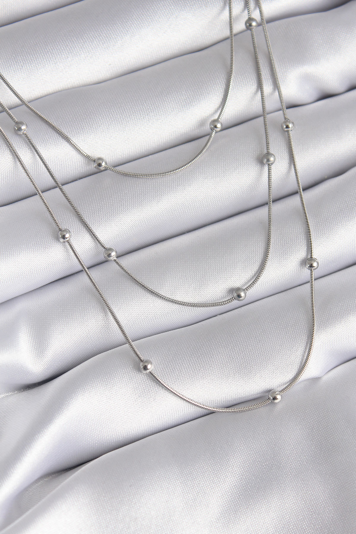 316L Çelik Gümüş Renk 3'lü Topçuk Detay Kadın Kolye