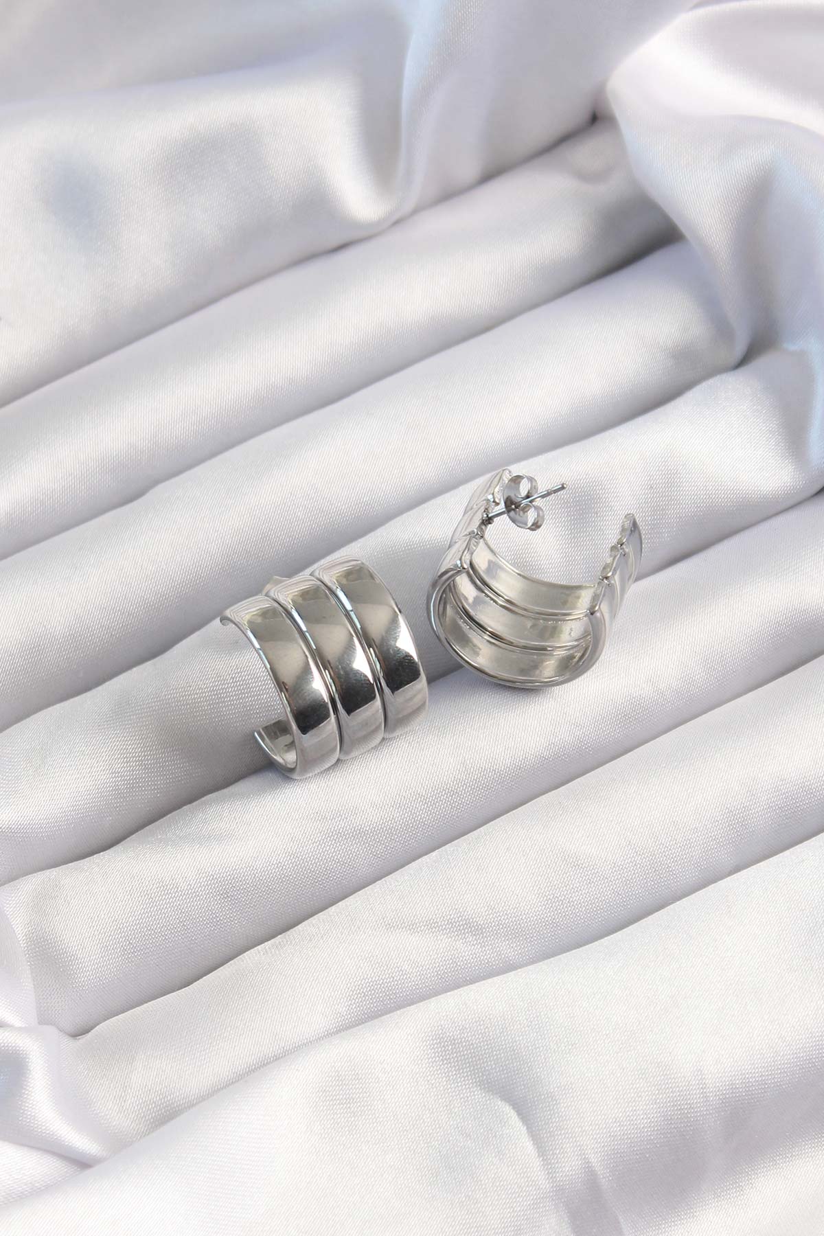 316L Çelik Gümüş Renk 3lü Görünüm Bombe Model Yarım Halka Küpe