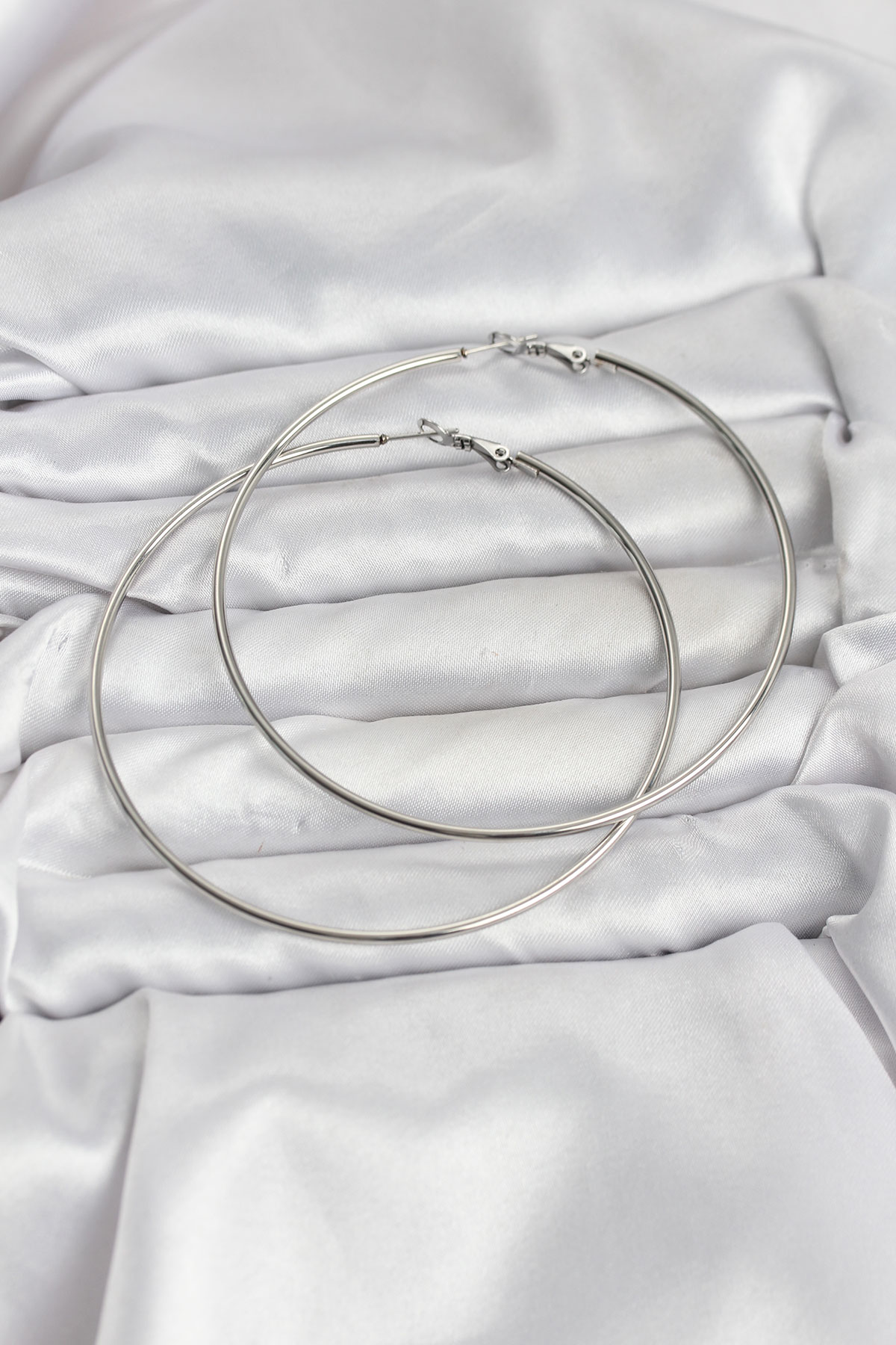 316L Çelik Gümüş Renk 75 mm Halka Küpe