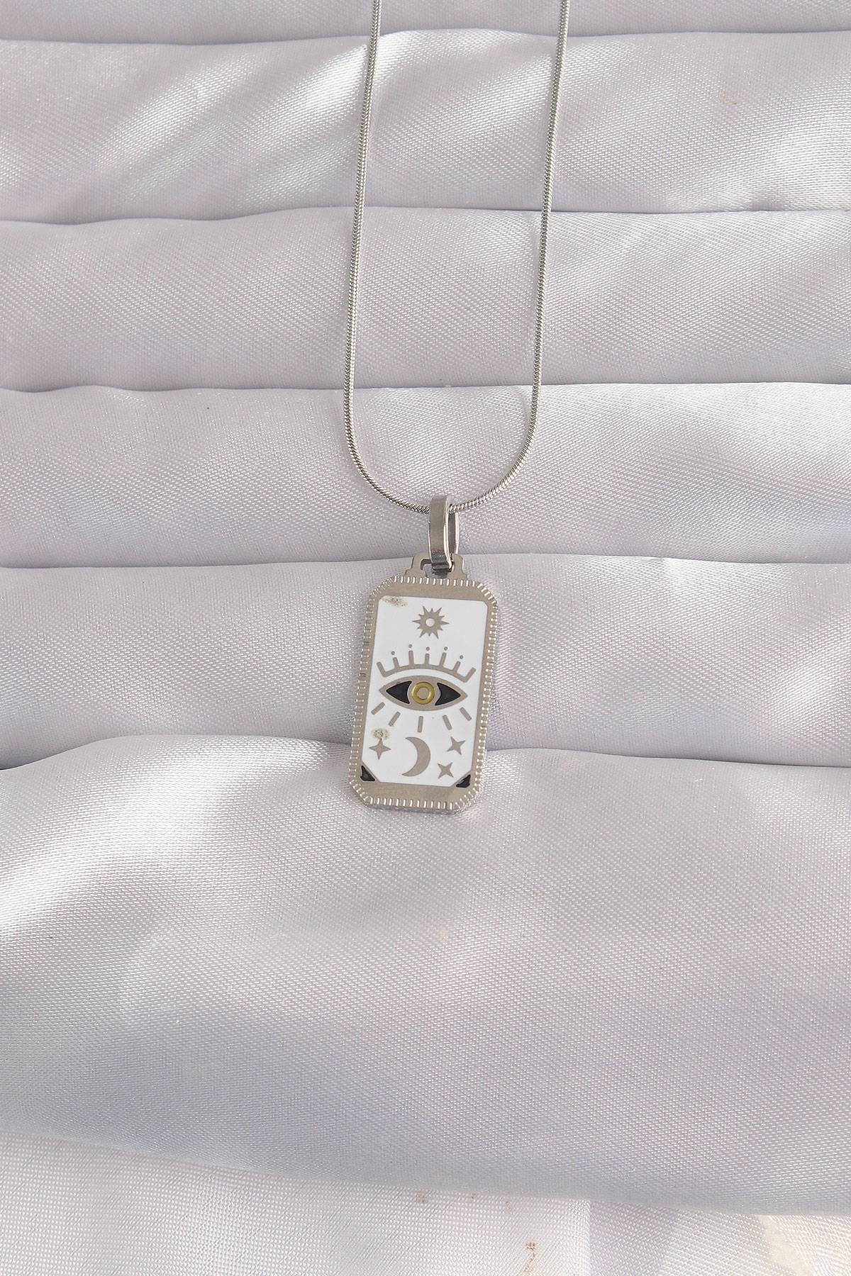 316L Çelik Gümüş Renk Beyaz Mineli Göz Figür Tarot Kolye