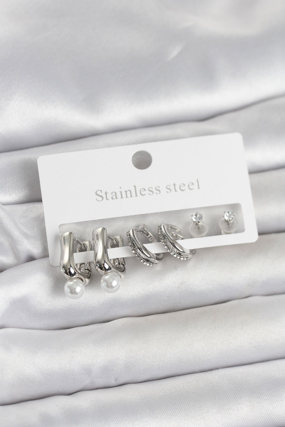 316L Çelik Gümüş Renk Kadın Küpe Seti