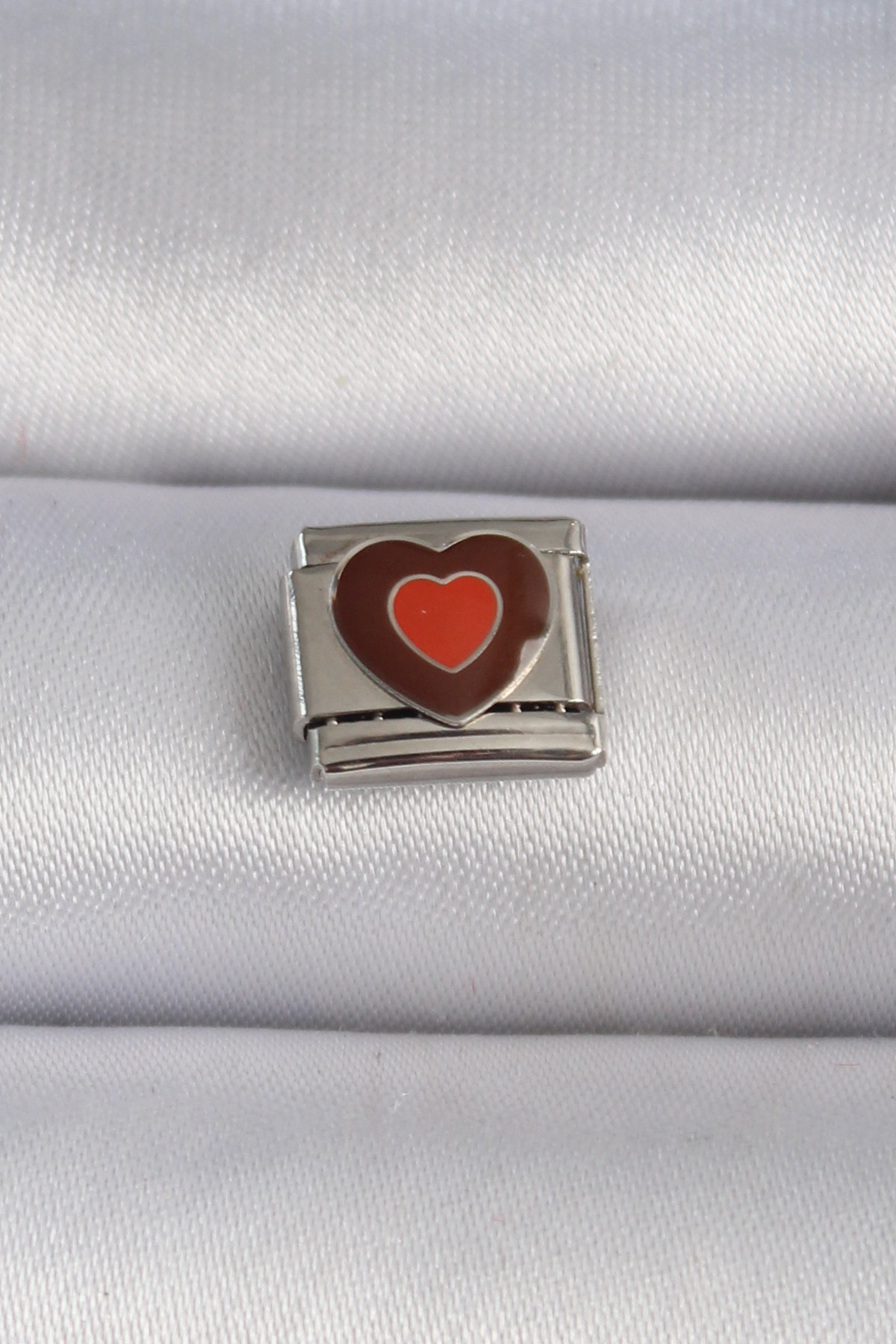 316L Çelik Gümüş Renk Kahverengi Kalp İşlemeli Nomination Charm