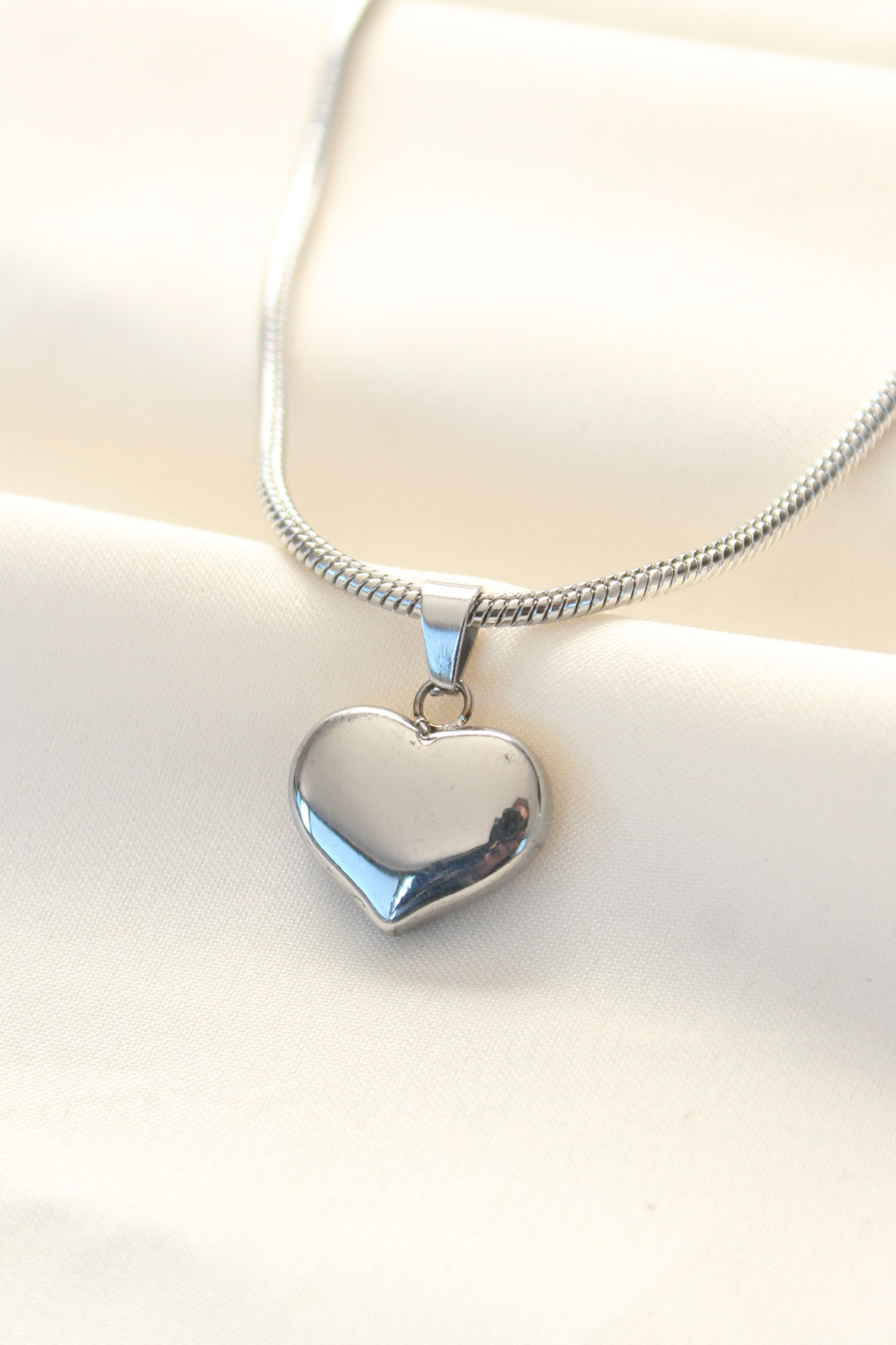 316L Çelik Gümüş Renk Kalp Kolye