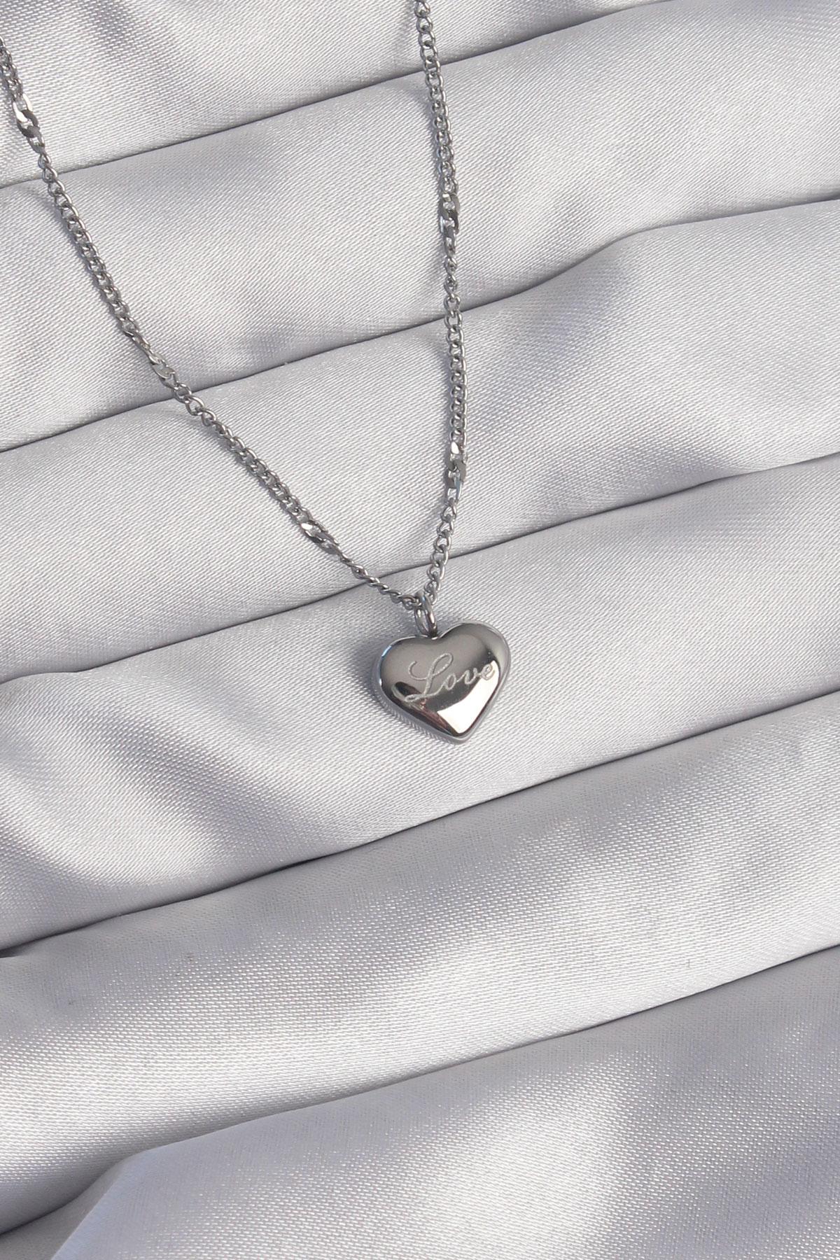 316L Çelik Gümüş Renk Kalp Model Love Kolye