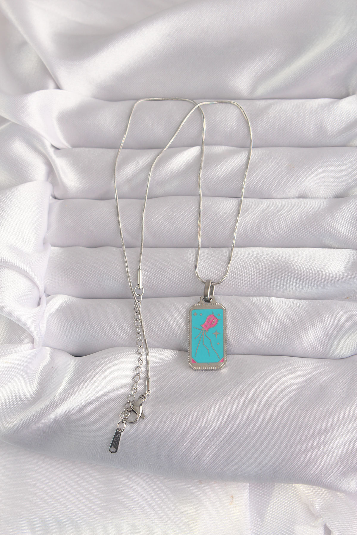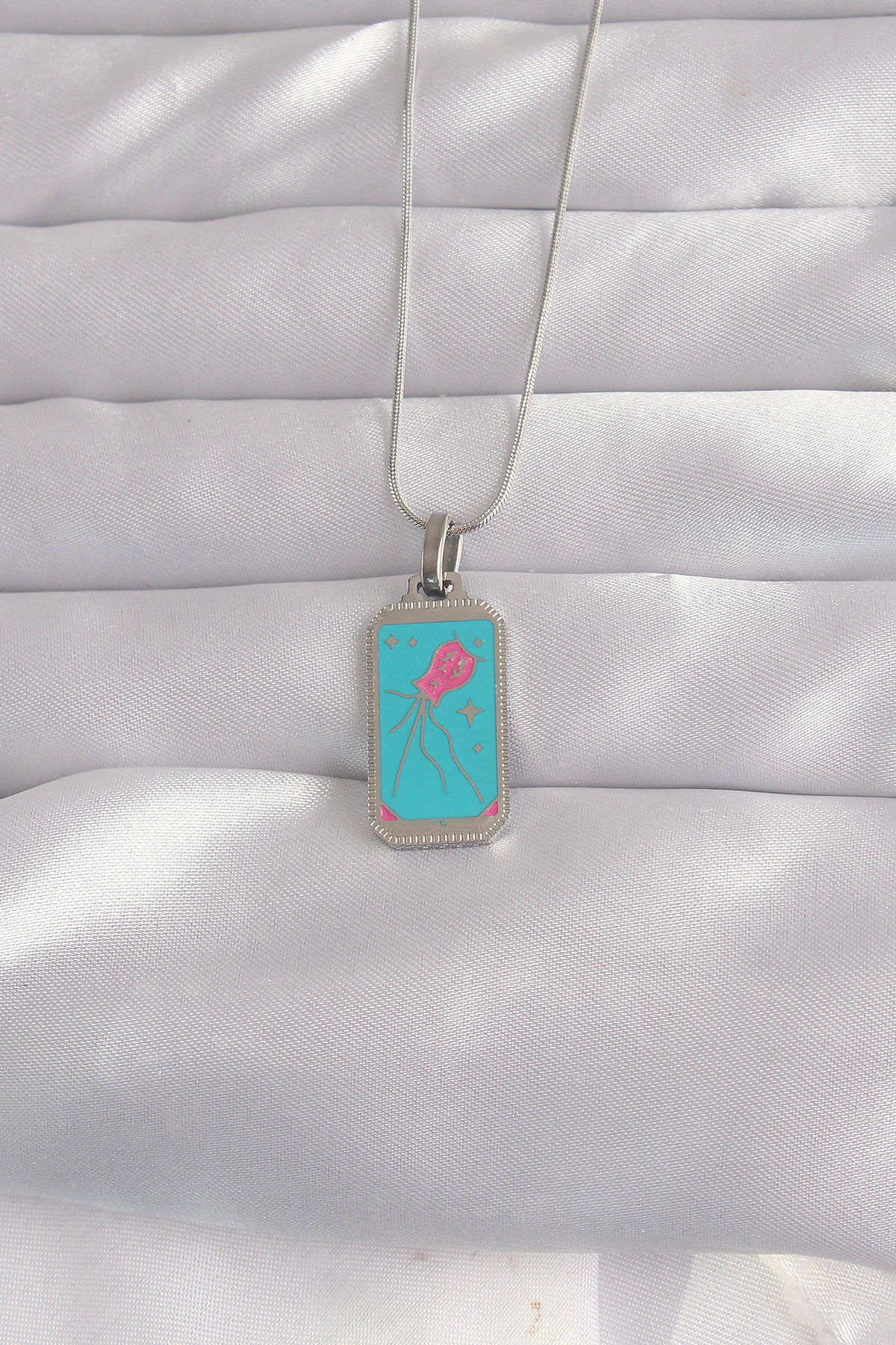 316L Çelik Gümüş Renk Mavi Mineli Tarot Kolye