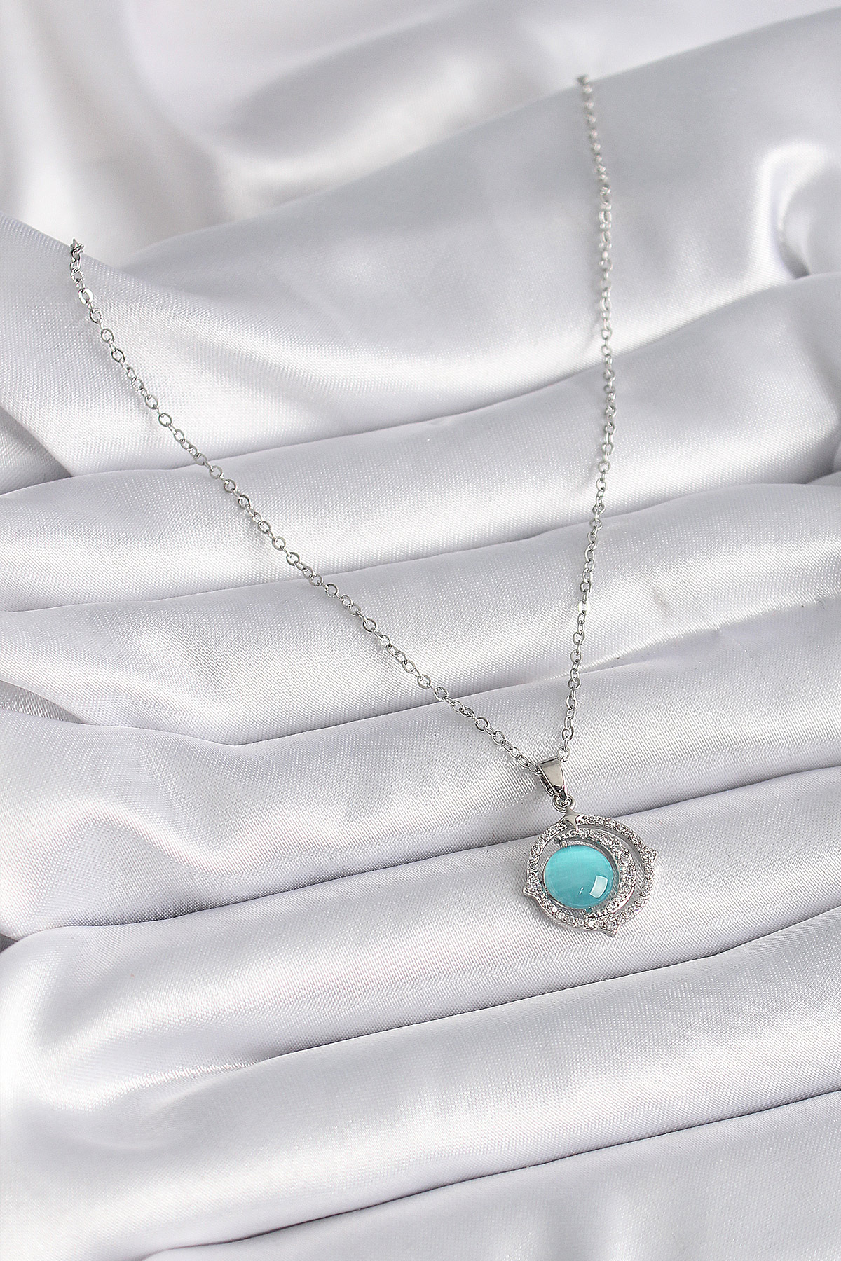 316L Çelik Gümüş Renk Mavi Sedefli Hilal Model Kadın Kolye