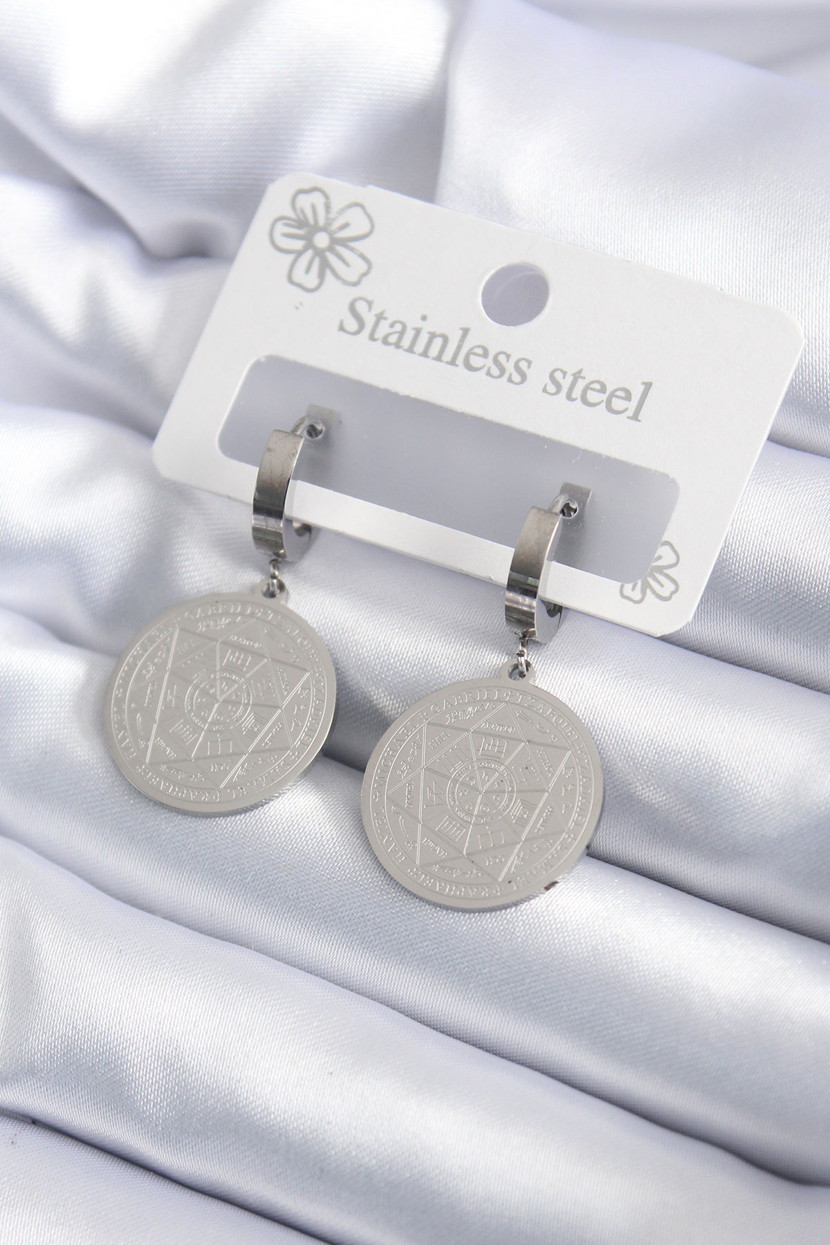 316L Çelik Gümüş Renk Pentagram İşleme Model Kadın Küpe