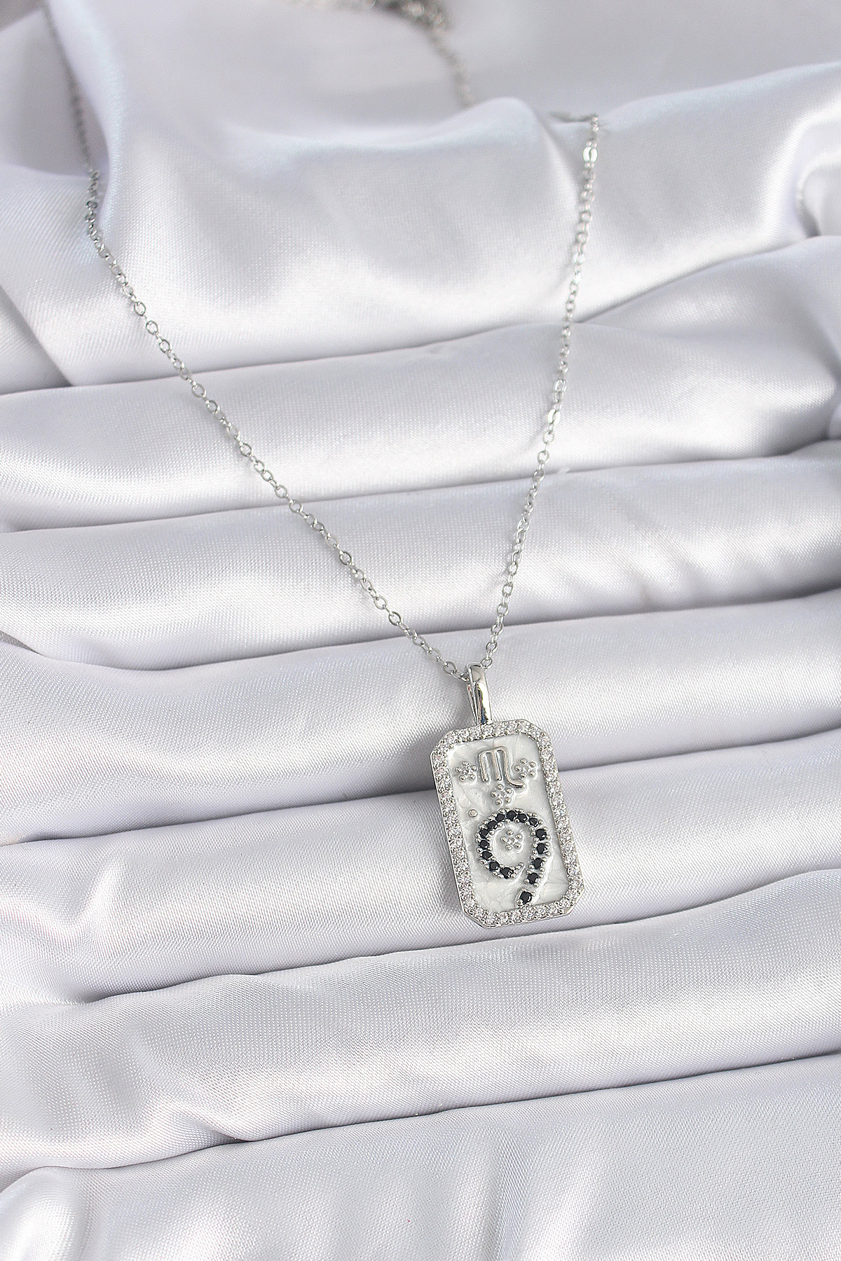 316L Çelik Gümüş Renk Zincir Akrep Burcu Zirkon Taşlı Kadın Kolye