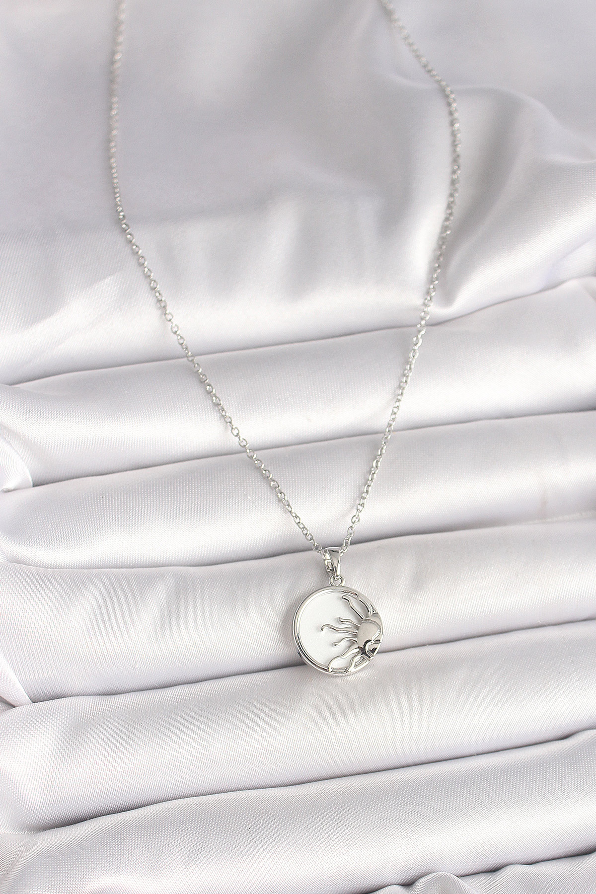 316L Çelik Gümüş Renk Zincir Beyaz Mineli Gün Batımı Model Kadın Kolye