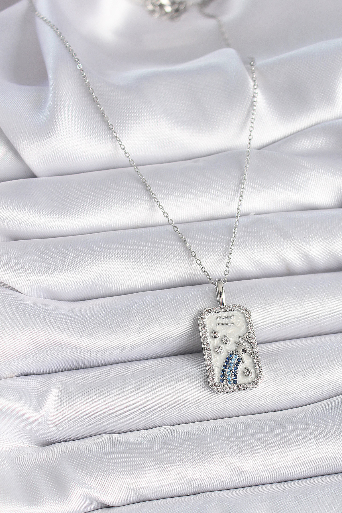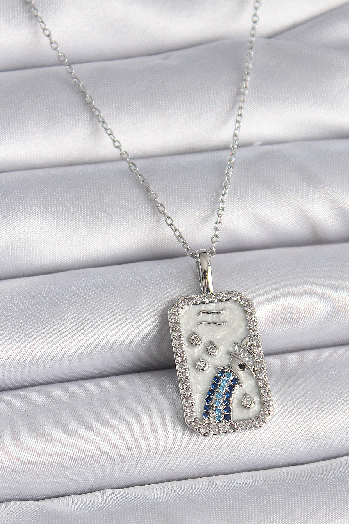 316L Çelik Gümüş Renk Zincir Kova Burcu Zirkon Taşlı Kadın Kolye