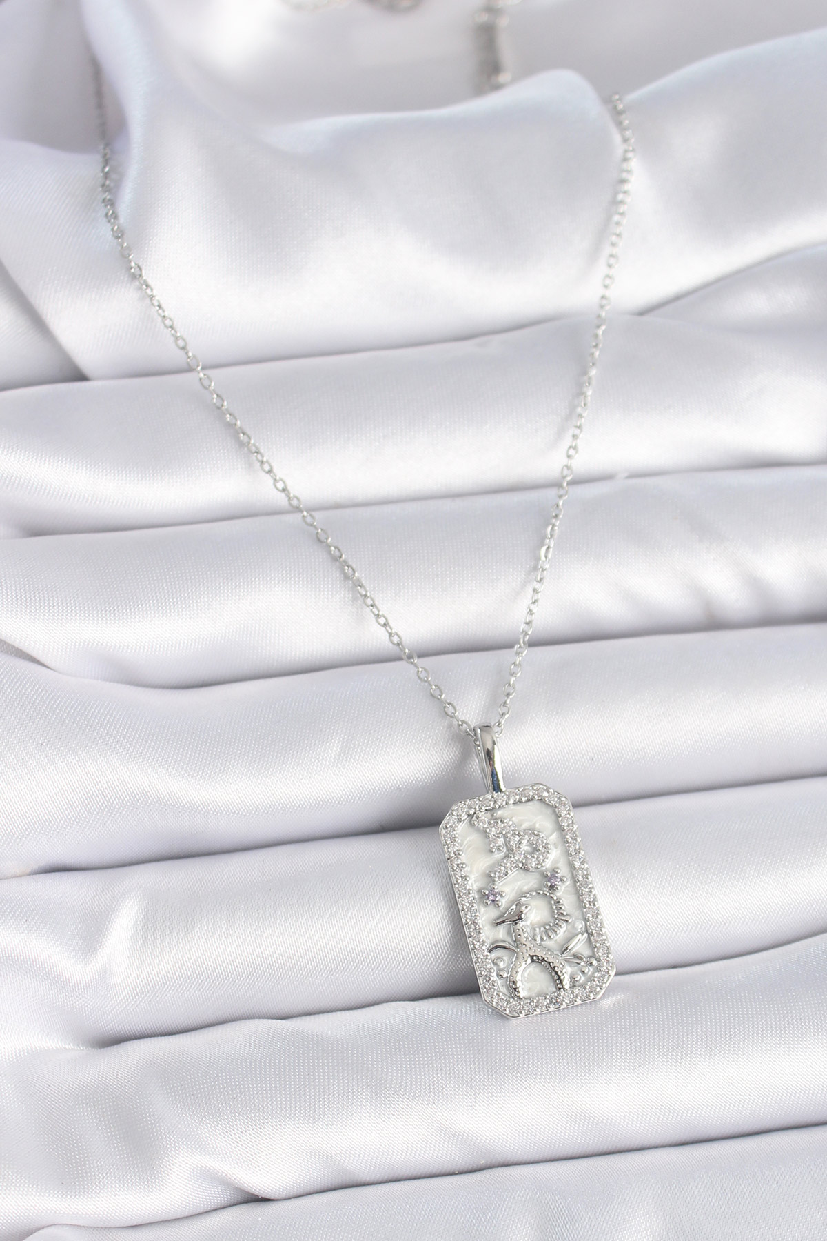 316L Çelik Gümüş Renk Zincir Oğlak Burcu Zirkon Taşlı Kadın Kolye
