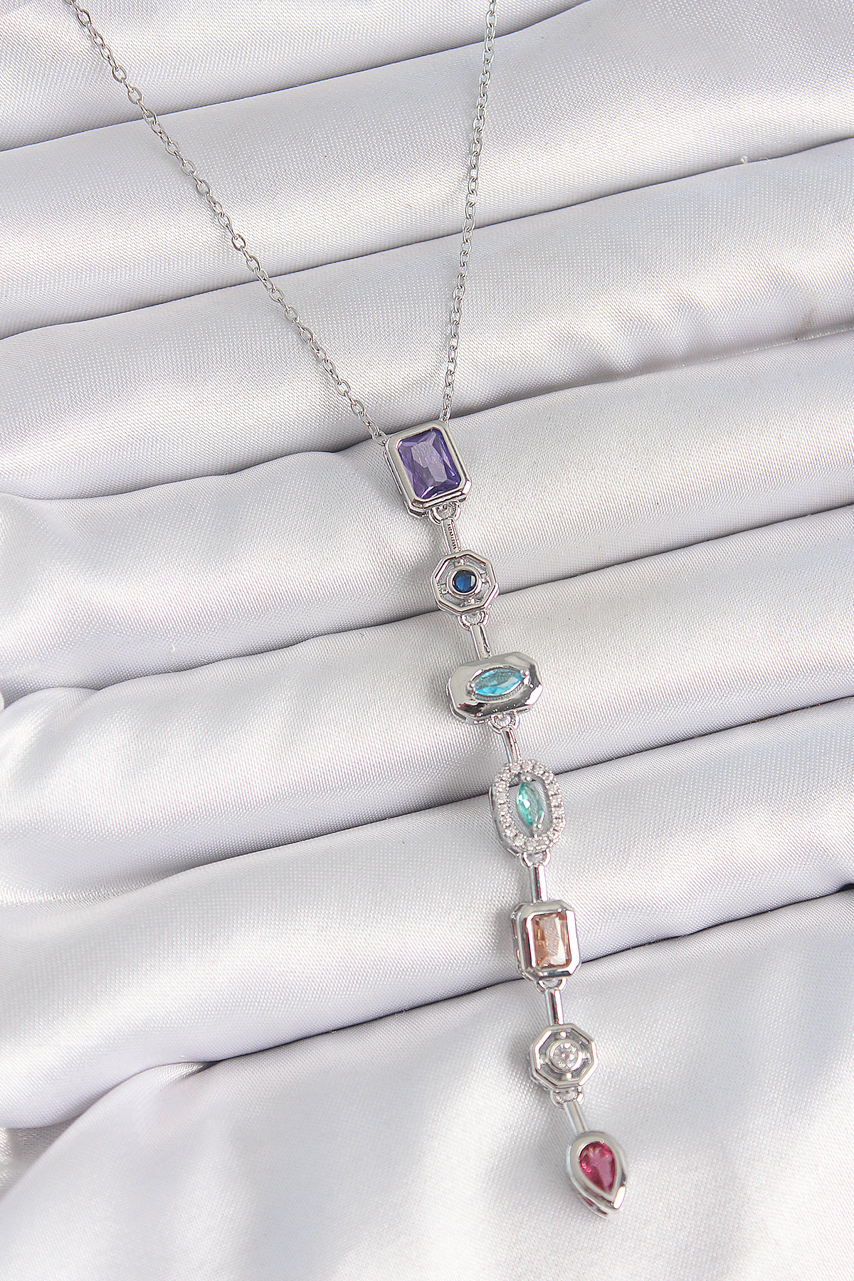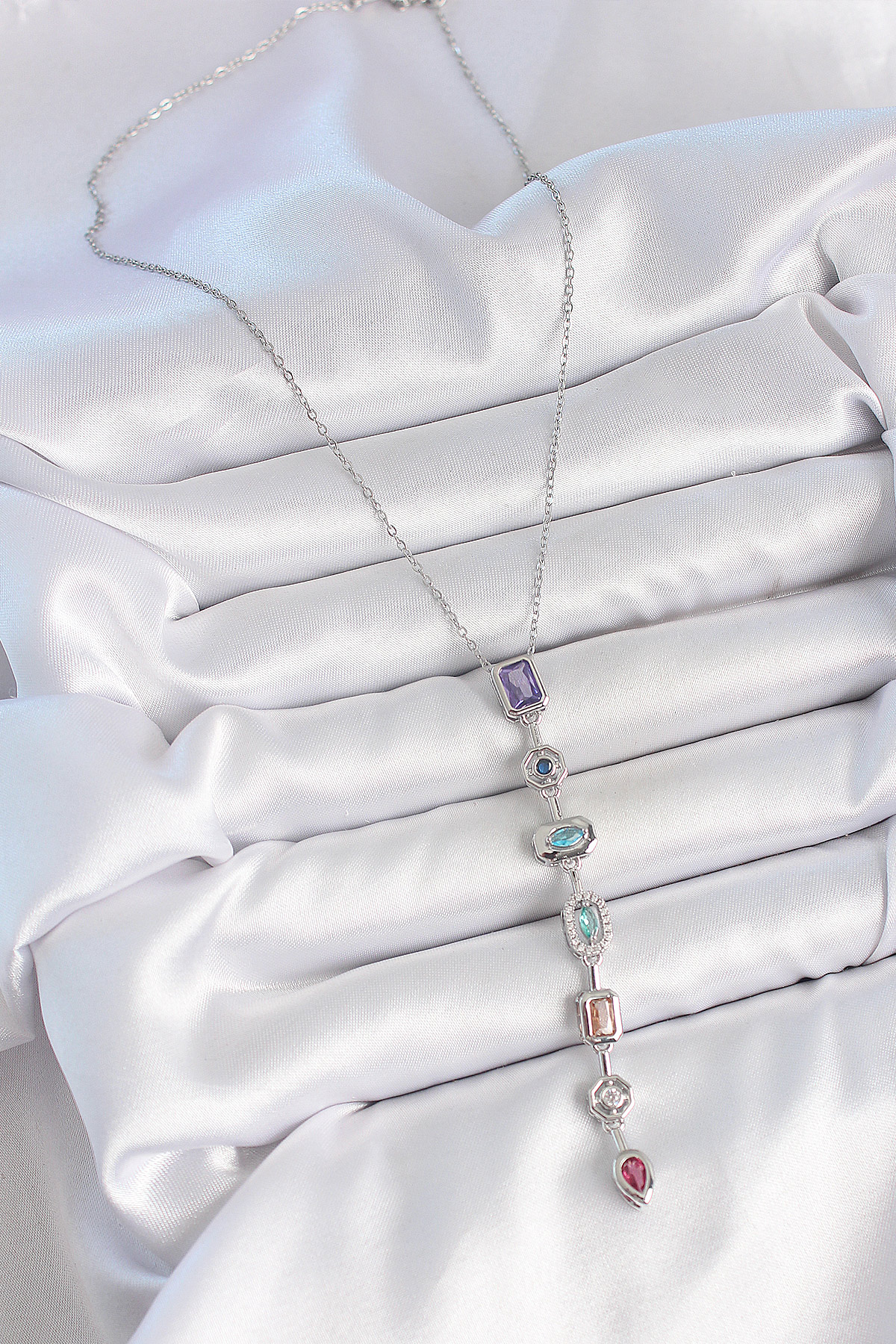 316L Çelik Gümüş Renk Zincir Zirkon Taşlı Y Model Dekolte Kadın Kolye