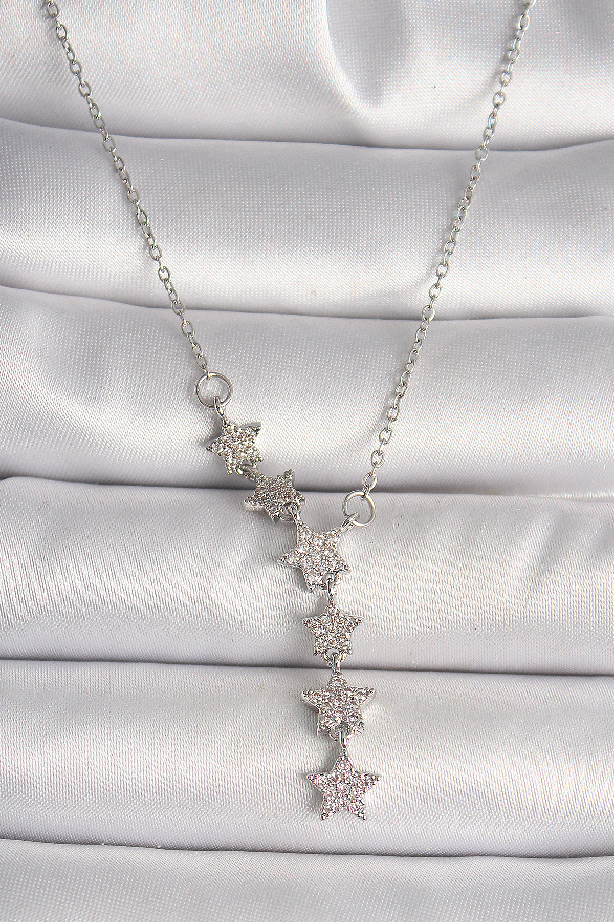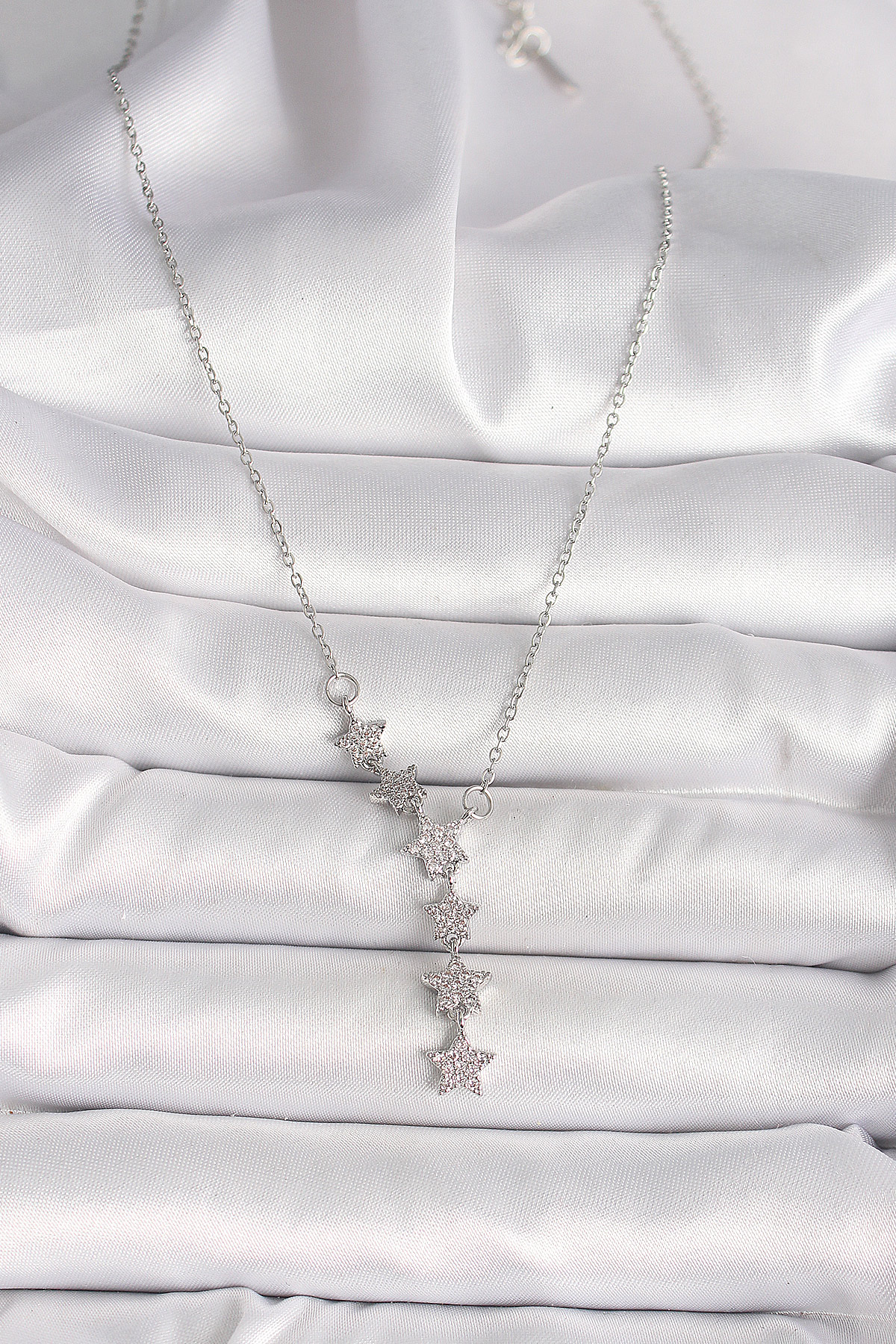 316L Çelik Gümüş Renk Zincir Zirkon Taşlı Yıldız Model Kadın Kolye
