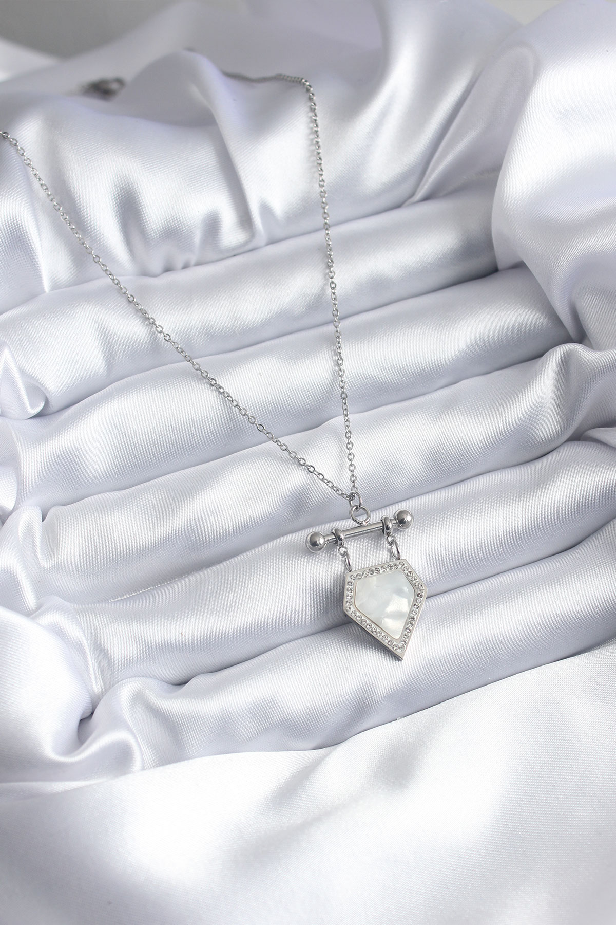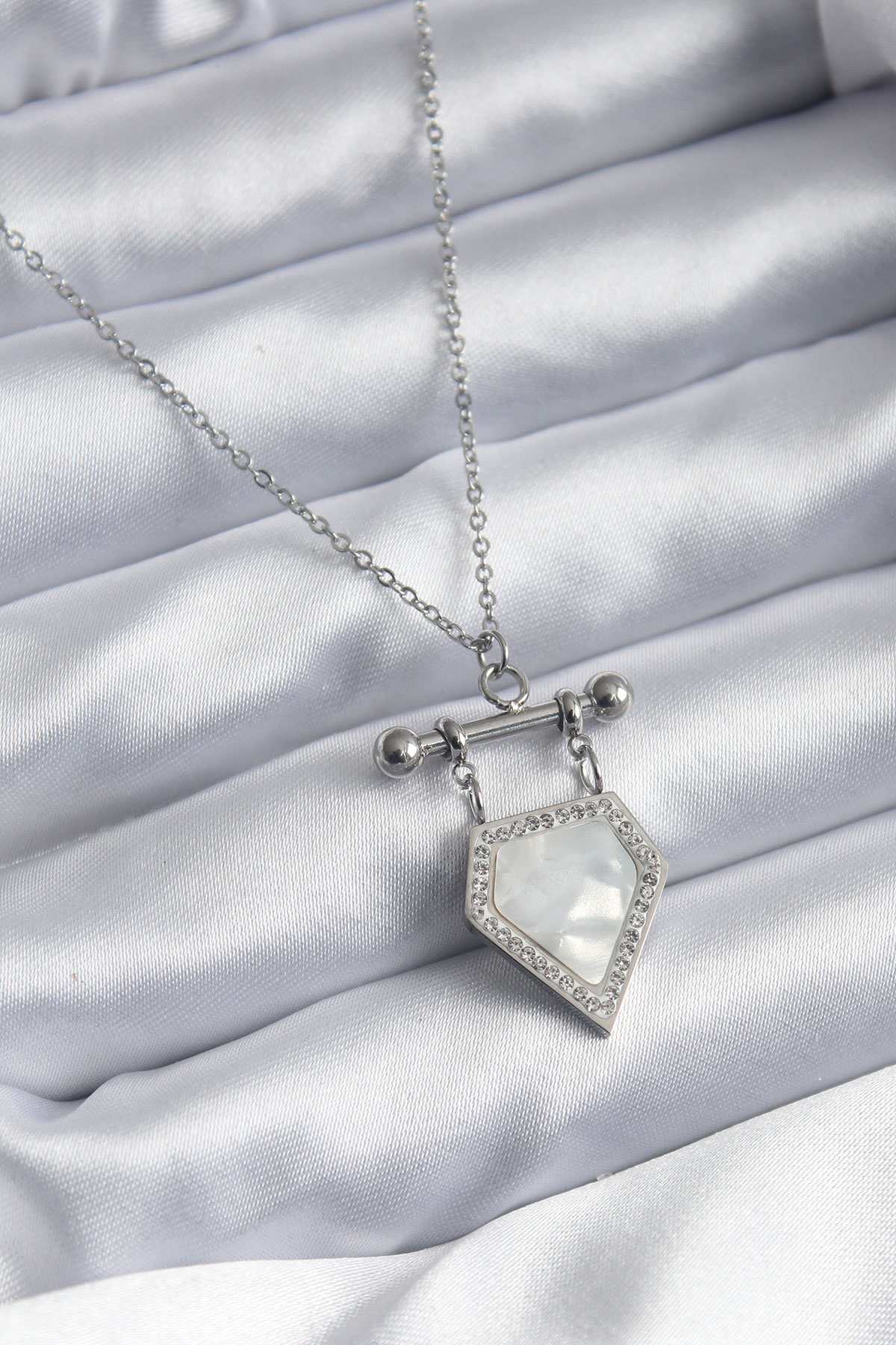 316L Çelik Gümüş Renk Zirkon Taş Detay Kadın Kolye