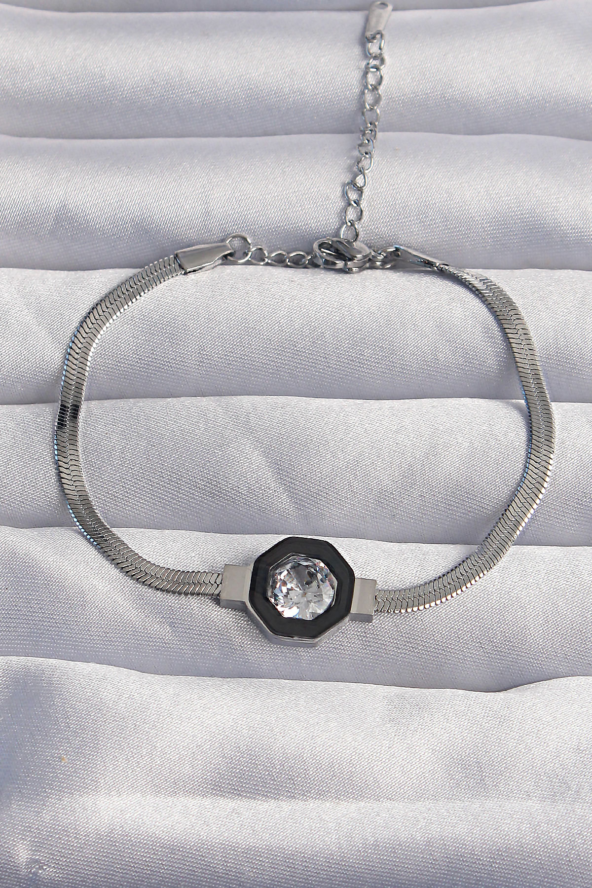 316L Çelik Gümüş Renk Zirkon Taşlı Mineli İtalyan Zincir Serenay Bileklik