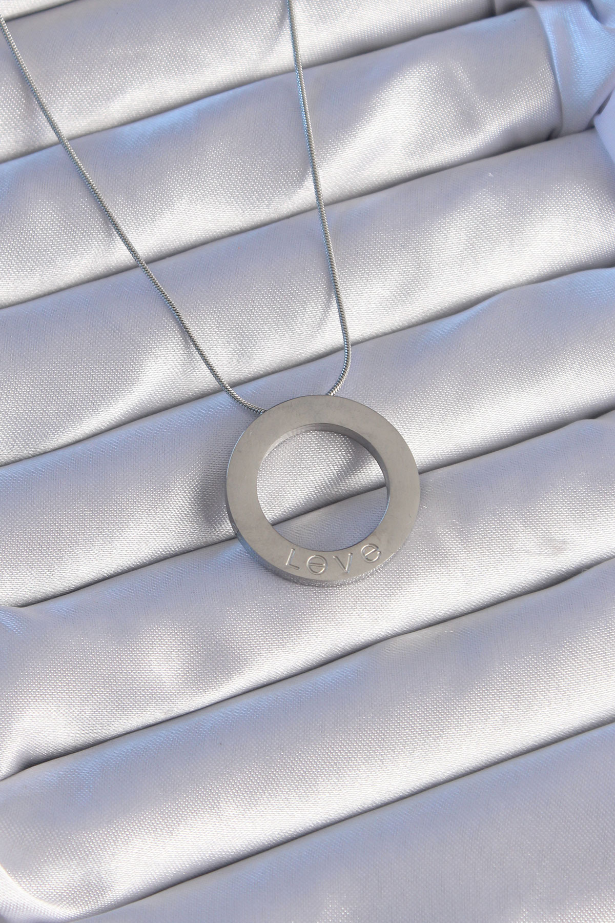316L Çelik Gümüş Renk Zirkon Taşlı Model Kolye