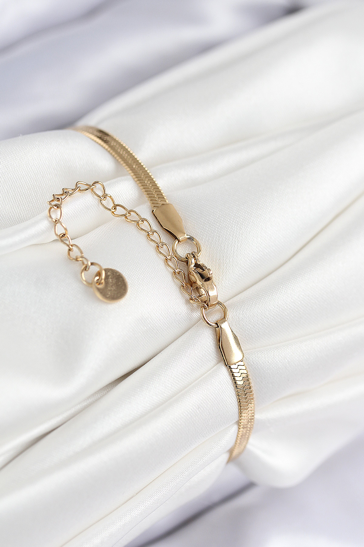 316L Çelik Nazar Boncuk Detaylı Yonca Model İtalyan Zincir Gold Renk Kadın Bileklik