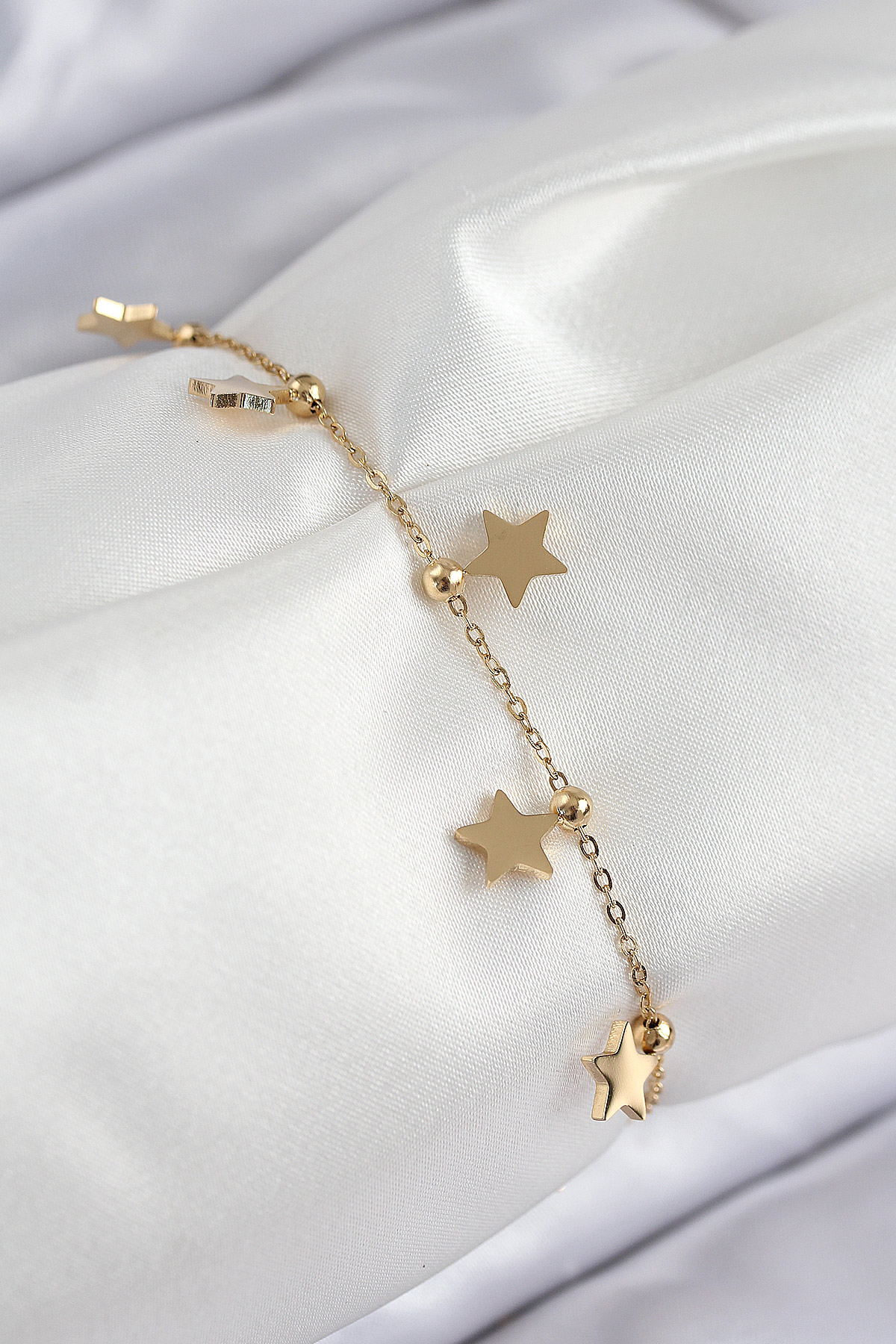 316L Çelik Sıralı Yıldız Model Gold Renk Kadın Bileklik