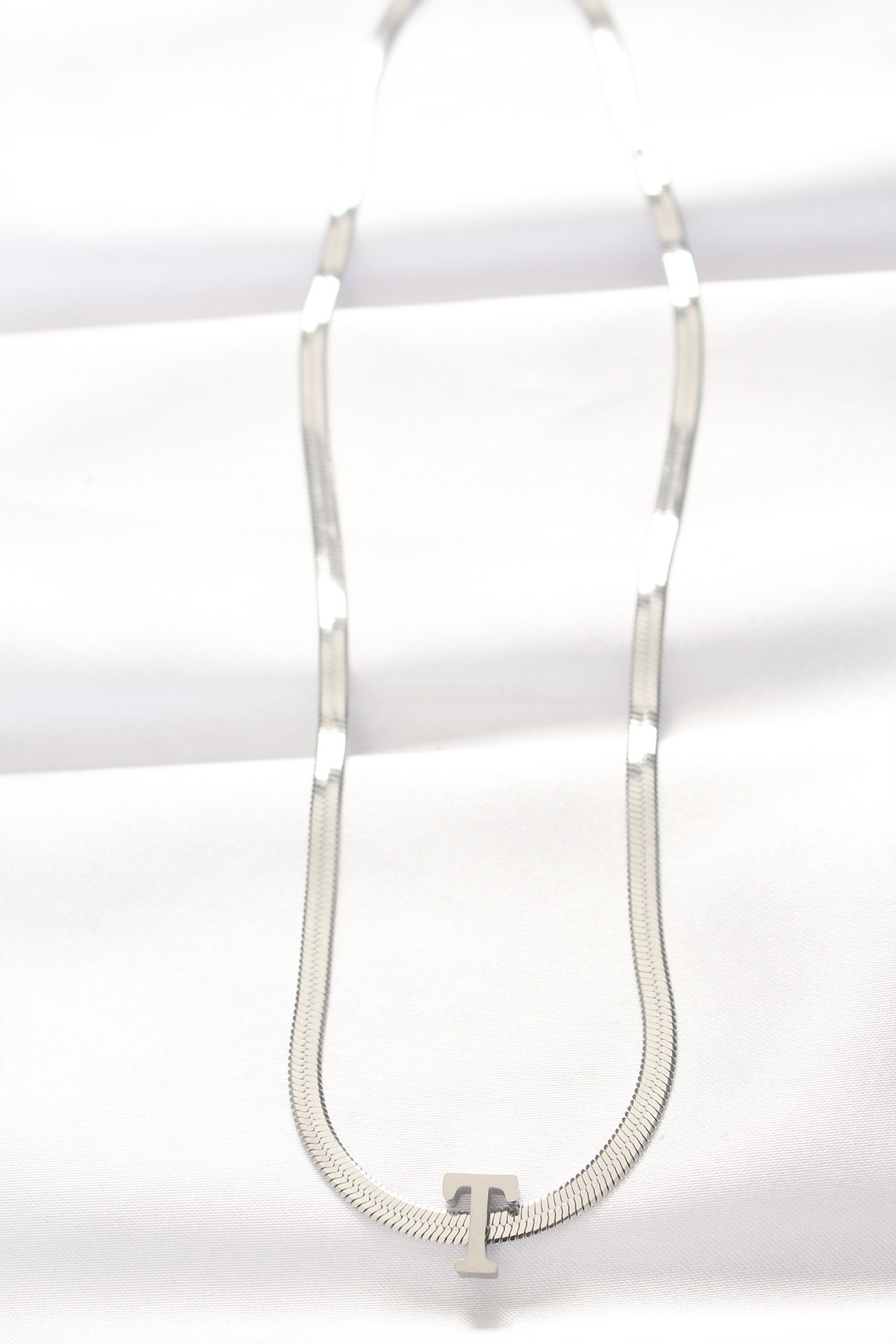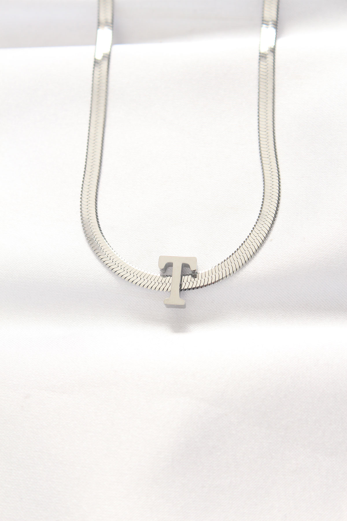 316L Çelik T Harfli Silver Renk İtalyan Zincirli Kolye