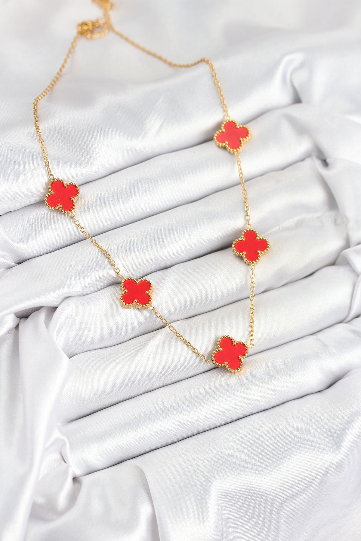 316L Çelik Zincir Gold Kırmızı Renk Yonca Kadın Kolye