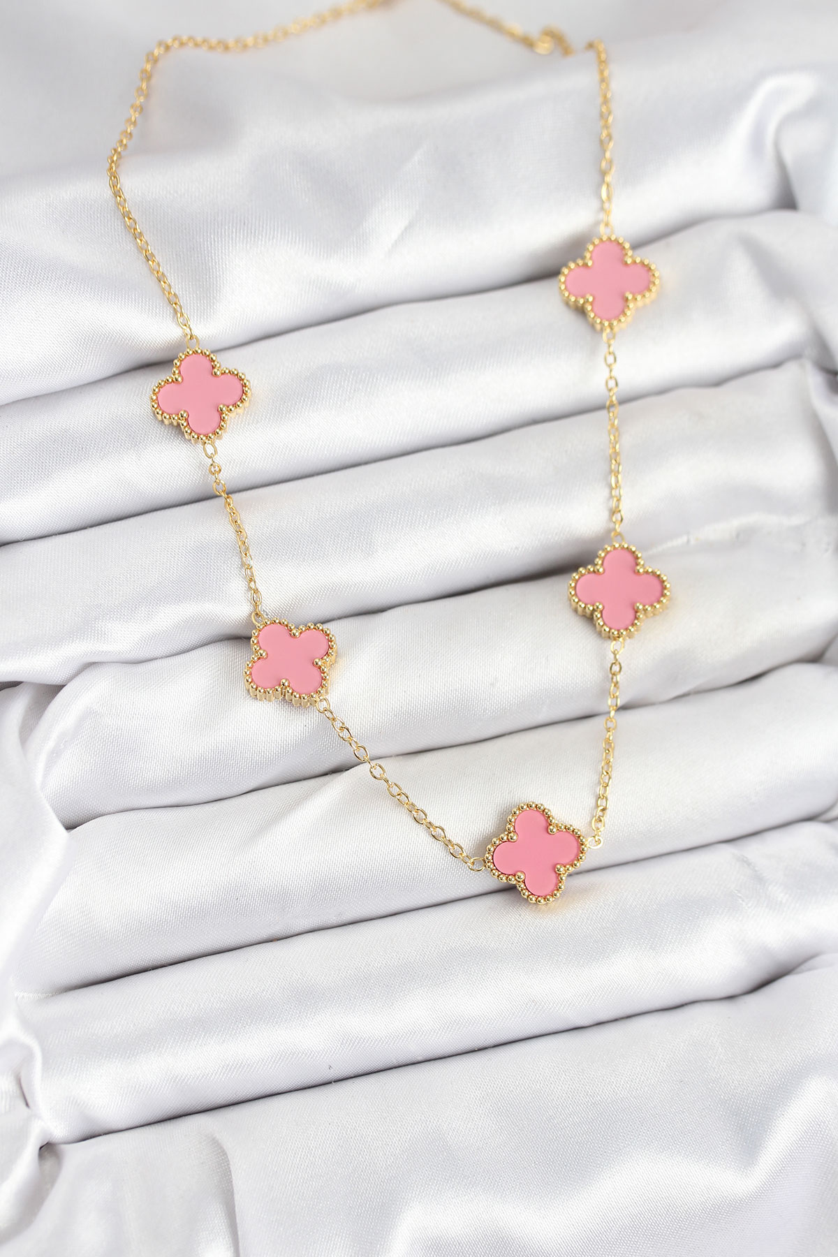 316L Çelik Zincir Gold Pembe Renk Yonca Kadın Kolye