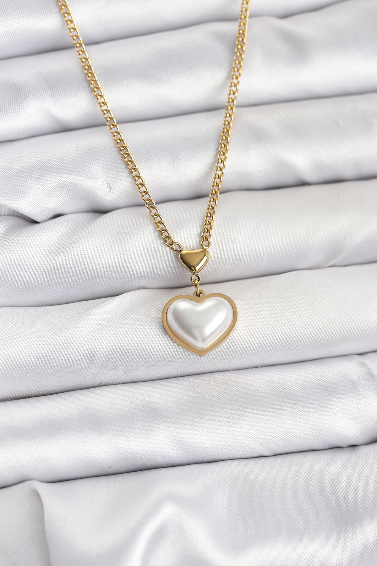 316L Çelik Zincir Gold Renk Bombeli Kalp Model Kadın Kolye