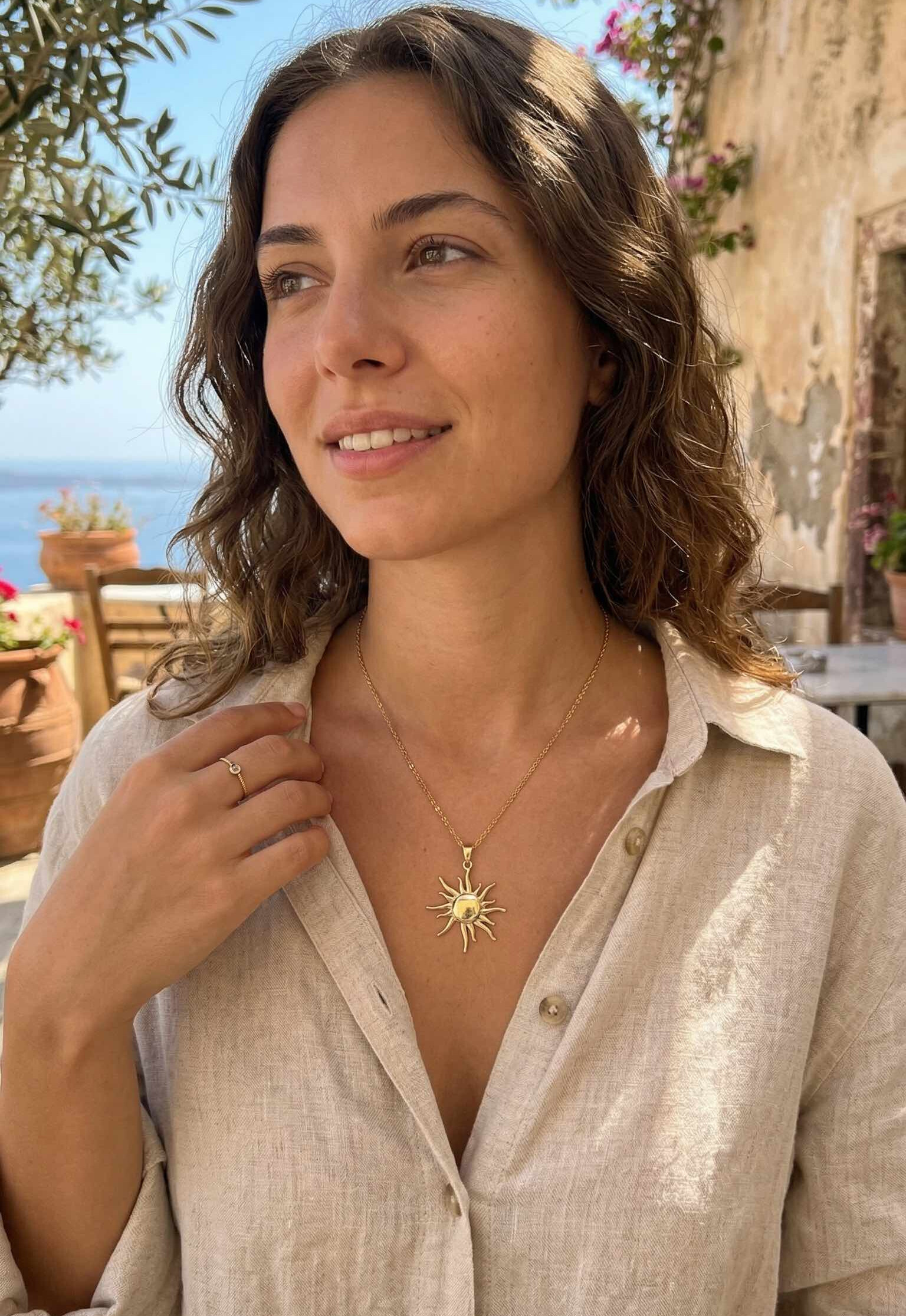316L Çelik Zincir Gold Renk Güneş Model Kadın Kolye