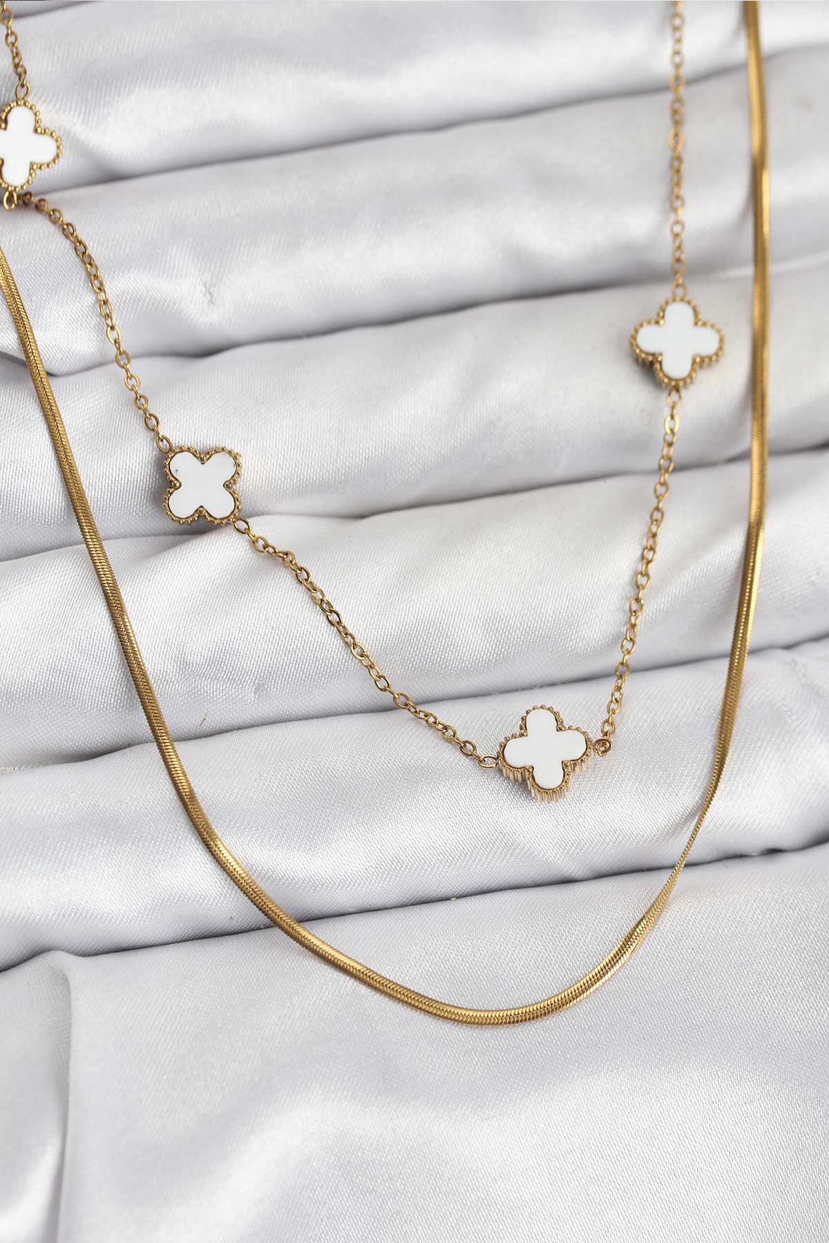 316L Çelik Zincir Gold Renk İtalyan Zincirli Yonca Model Kadın Kolye